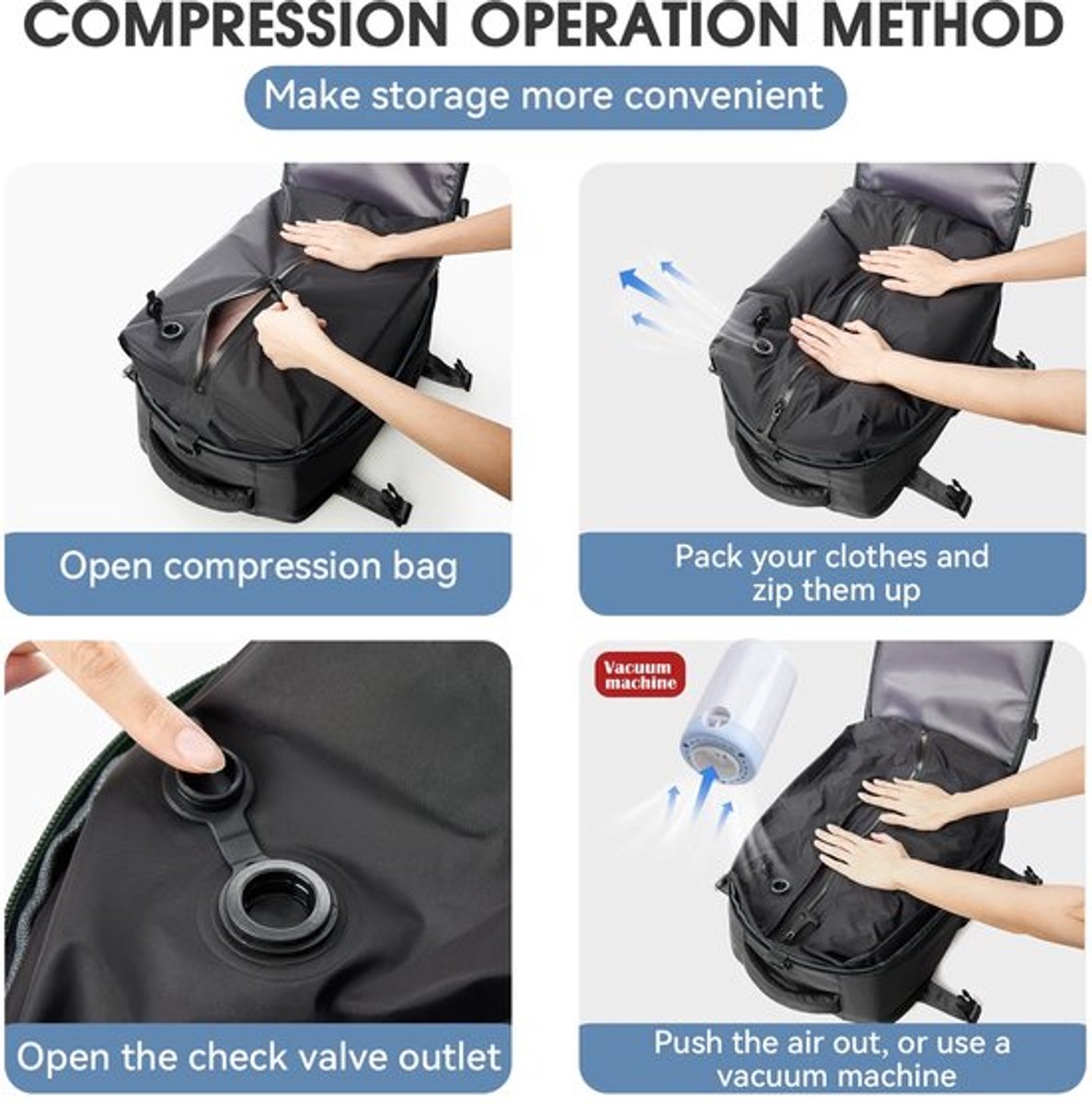 Optimisez votre efficacité en compressant et en augmentant votre capacité de 25 L à 35 L Un sac à dos, plusieurs utilisations Doté de compartiments fonctionnels et de poches multifonctions, ce sac à dos assure un rangement organisé et un accès facile. Sac à dos de voyage sous vide 35 L avec pompe Livré avec une mini-pompe à vide pour une compression sans effort. Doté de compartiments spécialisés et de poches multifonctions, comme une séparation sec/humide, une poche isotherme et une poche antivol, il peut contenir vos vêtements et vos affaires du quotidien. Sac Sous Vide Voyage Sac à Dos De Compression Sous Vide – Airpack 60 L Avec Compartiment Extensible Pour Ordinateur, Tissu Oxford, Imperméable à L'air, Vert Kaki Sac A Dos Voyage Cabine Avion Sous Vide Caractéristiques principales Sac à dos de voyage sous vide de grande capacité Emportez plus de choses avec notre sac à dos de grande capacité de 35 L, idéal pour les longues randonnées ou les longs voyages d'affaires. Les bandes réfléchissantes améliorent votre visibilité dans les environnements peu éclairés. Pompe à vide multifonctionnelle : Notre sac à dos de voyage à compression sous vide est équipé d'une pompe rechargeable et compacte, idéale pour les voyages, avec une batterie longue durée. Il peut également servir de lampe de camping avec 3 modes : normal, fort et SOS VEVOR Sac à Dos Voyage sous Vide, 65 L, Sac à Dos à Doté d'un port de charge USB, d'une mini-boussole et d'une boucle sifflet, il est idéal pour les déplacements quotidiens, les voyages d'affaires et le camping. bandes réfléchissantes Restez visible la nuit. Que ce soit pour le camping ou les voyages d'affaires, ce sac à dos de voyage est là pour vous Compression sous vide sans effort : Ce sac à dos de voyage sous vide est équipé d'une mini-pompe à vide pour une compression rapide. Compression sous vide sans effort : ce sac à dos de voyage sous vide est fourni avec une mini-pompe à vide pour une compression rapide. Optimisez votre rangement en compressant son volume et en l'augmentant de 25 L à 35 L Compression sous vide sans effort : Ce sac à dos de voyage sous vide est équipé d'une mini-pompe à vide pour une compression rapide. · Plusieurs compartiments et... Largement utilisé Des voyages d'affaires aux escapades de week-end, des trajets quotidiens aux utilisations en extérieur difficiles, ce bagage à main sous vide gère tout. Matériau : Tissu enduit 900 x 900D et cuir PVC, Couleur : Noir Tension d'entrée : DC 5 V 2 A, Puissance nominale : 21 W Contenu du coffret 1 x sac à dos de voyage sous vide, 1 x pompe à vide Tout a sa place avec notre sac à dos de voyage sous vide Spécification Numéro du modèle de l'article : cch002