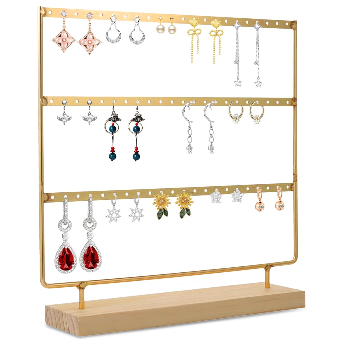 Cadeau idéal : Cet organisateur de boucles d'oreilles est un cadeau idéal pour toute femme ou jeune fille sur votre liste. 60 Trous Boucles D’oreilles 60 Trous Porte Boucles D'oreilles Présentoir, 3 Couches Presentoir A Boucle D'oreille Avec Base En Bois, Support Boucle D'oreille, Porte Bijoux Pour Clous, Clips D'oreilles, Boucles D'oreilles Arbre à Bijoux Décoratif Stable Caractéristiques : 1., cadre en fer de haute qualité, anti-corrosion et anti-rouille ; 2., base en bois massif, sûre et stable, ne risque pas de basculer ; 3., conception à trois niveaux, facile à classer et à organiser ; 4., idéal pour l'affichage. Boîte de bijoux 20cm organisateur boucle oreille anneaux Noir Di73309... Matériau de haute qualité : Le support de boucles d'oreilles est fabriqué en fer et en bois massif, il ne risque pas de basculer, il est stable et durable. Facile à utiliser : Le support de boucles d'oreilles et la base sont séparés, faciles à démonter et à assembler. Support pour boucles d'oreilles à 3 niveaux, 69 trous, organisateur de bijoux. 12,97€. 11 vendus. Support pour boucles d'oreilles à 3 niveaux, 69 trous... Cette conception permet non seulement d'économiser de l'espace, mais aussi de faciliter le tri et la présentation des boucles d'oreilles. Spécifications : Matériau : fer, bois massif Couleur : doré Capacité : 30 paires de boucles d'oreilles Taille : 23x25 cm/9., 05x9., 84 in Poids : 300 g Inclus : 1 x support de boucles d'oreilles Remarque : 1., En raison de l'effet de lumière, la couleur réelle peut être légèrement différente de celle de la photo., 2., En raison des mesures manuelles, un écart de 0,1 à 0,3 cm peut être toléré. Il suffit d'insérer le support dans le trou de la base en bois. 60 Trous Porte Boucles D'oreilles Présentoir, 3 Couches 60 trous pour boucles d'oreilles : Le support de boucles d'oreilles est conçu avec trois niveaux pouvant contenir un total de 30 paires de boucles d'oreilles. Un élégant arbre à bijoux en métal avec une finition blanche classique.