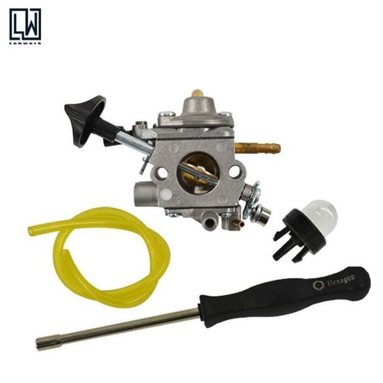 Remplacement Zama C1Q-S183 C1Q-S184 ZAMDOE BR 600 Carburateur Pour Stihl BR600 BR500 BR550 Carburateur Stihl BR600 Convient aux souffleurs arrière BR500, BR550 et BR600. Remplace les références : 4282 120 0606, 4282 120 067 et 4282 120 0068. Remplace le modèle Zama C1Q-S183. Caractéristiques : Couleur : noir, jaune, argent. Matériau : métal et plastique. Contenu de l'emballage : 1 carburateur. 1 filtre à air. 1 bougie d'allumage. 2 injecteurs de carburant. 1 tuyau de carburant. 2 ampoules... KIT COMPLET CARBURATEUR pour Stihl BR500 BR550 BR600 fiable et durable Le joint est positionné avec précision et s'adapte parfaitement au carburateur, évitant ainsi le risque de fuite causé par un mauvais alignement. Carburateur BR600 Original/qualité avec 2 joints 4282-120-0611 pour STIHL BR500 BR550 BR700 4 mélanges souffleurs ZAMA C1Q-S183 CARB. 17 vendus. 28,99... Contenu de l'emballage : 1 jeu de joints de cuve, 4 joints, 1 ressort de régulateur, 1 ressort de rappel Remplacer les numéros de pièce : 16010-883-015, 16561-ZM0-000, 16562-ZM0-000, 16212-Zl8-000 Matériaux de haute qualité : Fabriqué à partir de matériaux de haute qualité, chaque composant du kit est durable et résistant à l'usure, et peut résister efficacement à diverses pertes lors d'une utilisation quotidienne pour assurer un fonctionnement stable à long terme Fonctionnalité Carburateur de rechange pour ZAMA C1Q-S183, C1Q-S184 Carburateur de rechange pour Stihl 4282 120 0606, 4282 120 0607, 4282 120 0608, 4282-120-0606, 4282-120-0607, 4282-120-0608, 42821200606, 42821200607, 4281200608 Carburateur compatible pour Stihl BR500, BR550, BR600, BR700 les souffleurs à dos Contenu de l'emballage : 1 x carburateur 2 x joints 1 x filtre à air 2 x conduite de carburant 2 x filtres à carburant 1 x bougie d'allumage 1 x jauge d'épaisseur 1 x tournevis