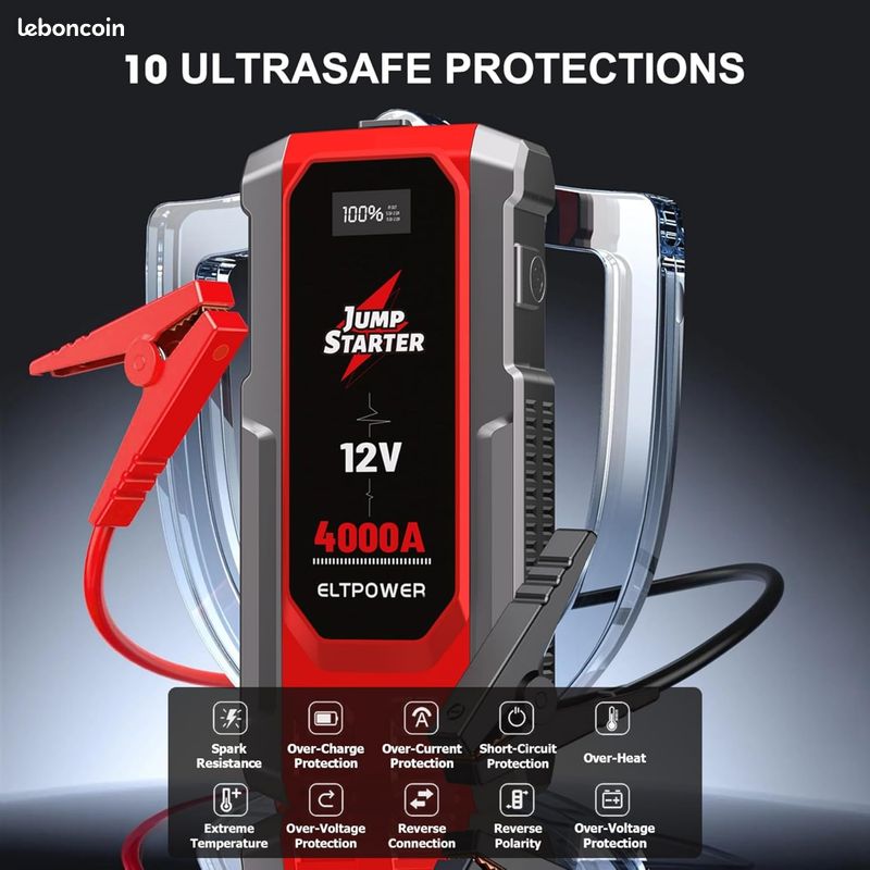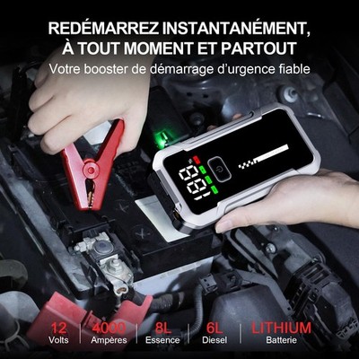 Une seule charge peut fournir jusqu'à 60 démarrages, capable de démarrer rapidement une batterie déchargée en quelques secondes et garantit un fonctionnement stable dans des températures extrêmes allant de -20°C à 60°C. Compresseur Voiture Booster Batterie Voiture 4000A - Démarreur Portable Avec Compresseur - Jusqu'à 8L Diesel Booster Batterie 4000a Ce booster batterie voiture résiste à une chute de 1,2 m. Booster Batterie Voiture FOWAWU 6000 A 24800mAh(Jusqu'à 9,5L Gaz 7,5L Gazole), 12V Démarreur Batterie Avec Pinces De Sûreté Intelligentes, Booster Voiture Avec Port USB 3,0, Lumière LED Démarrage Secours Moto SUV 1 PROTECTIONS 2 RÉSISTANT AUX CHUTES 【Système de gestion de cellules & puce de sécurité】La batterie du booster batterie voiture comporte plusieurs groupes de cellules ; une cellule sous-chargée provoquera un courant trop faible et une sur-décharge, rendant l'appareil inutilisable. TREKURE 8-in-1 Booster Batterie Voiture 23800Ah, Déarreur Batterie... Si vous avez des questions ou des besoins sur ce booster de batterie, n’hésitez pas à nous contacter à tout moment. avertissement en cas de mauvais branchement des pinces), ce produit évite les dommages et les risques Booster batterie diesel : Coparatif, Avis, eilleurs prix et Prootions Doté de 10 protections complètes (ex. La puce de gestion avancée exclusive de FOWAWU détecte en temps réel l'état de chaque cellule, charge prioritairement celles à faible niveau pour équilibrer la charge globale, améliorant ainsi significativement le nombre de démarrages. 【Multifonction 5-en-1】 Cet appareil peut servir de démarreur de secours, de source d’alimentation portable de 26800mAh (alimentant drone, téléphone, écouteurs, etc. 1 USB UNIVERSEL 2 GUIDE TOUCHES 3 HAUTE QUALITÉ Ce design rend ce start booster batterie véhicule plus facile à utiliser et plus clair