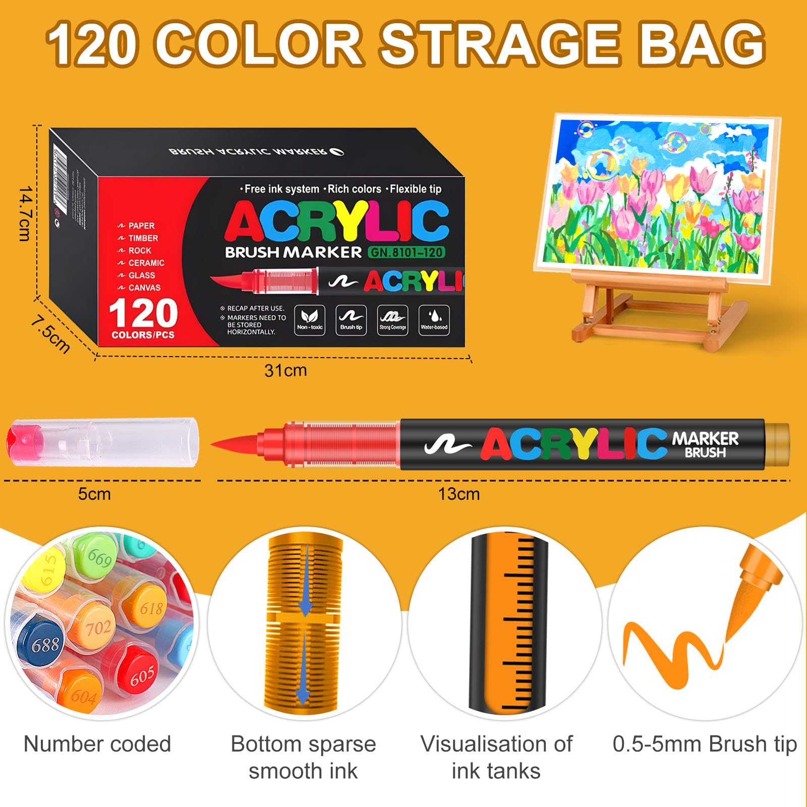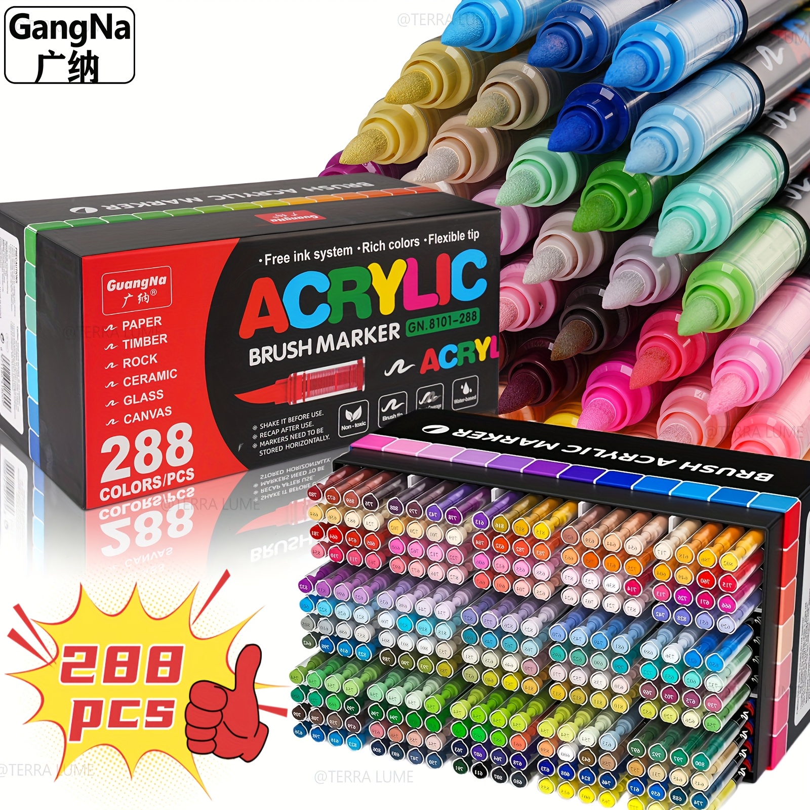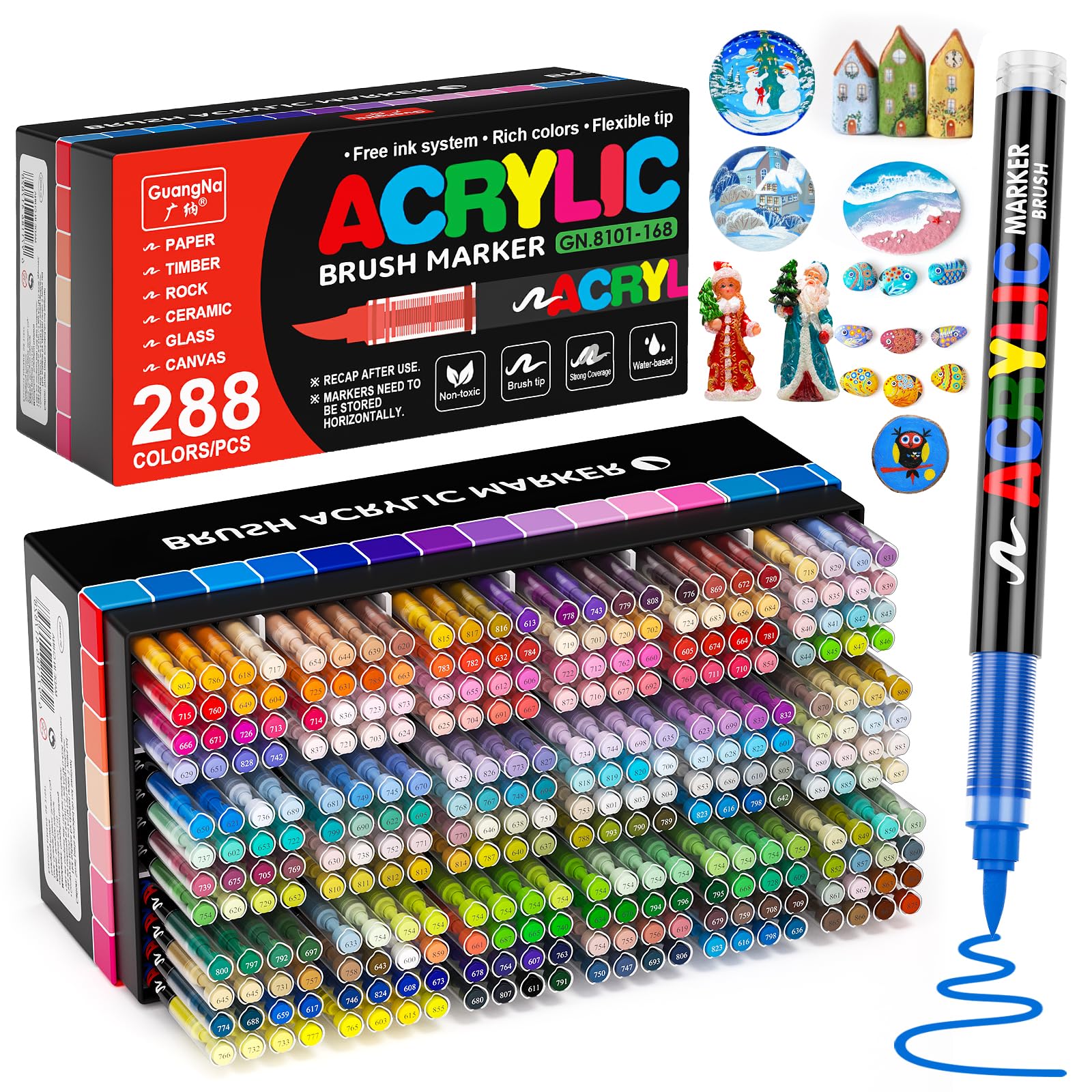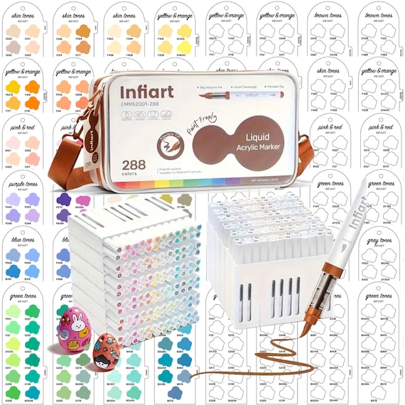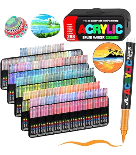 Kit Créatif 288 Couleurs Arrtx Arqueurs Acryliques 60A, Pointe Pinceau, Pour Peinture Sur Roche Feutres Acrylique Lot de 288 arqueurs de peinture acrylique à pointe pinceau douce Stylos marqueurs acryliques à pointe de pinceau liquide direct... Haute pigmentation et séchage rapide assurent une excellente couverture, même sur surfaces foncées. Idéal pour superposer les couleurs sans transpercer. Le système à réservoir intégré garantit un débit d'encre constant et fluide pour un coloriage sans effort. Lot de 288 Acrylic Paint Pens · Marqueurs Acryliques à Pointe Pinceau · Stylo Peinture Acrylique Adulte · Encre à l'Eau pour Surfaces Multiples : Pierre, Verre, Tissu, Bois, Toile · Idée Cadeau POUR PERSONNALISER TOUTES VOS CRÉATIONS · Ces marqueurs pour adultes adhèrent parfaitement sur une multitude de supports : verre (tumbler, mug), pierre, céramique, bois, textile, métal, carton et canvas. Parfait pour le DIY, la customisation d'objets et la décoration. Un cadeau original et apprécié pour Noël ou un anniversaire. Arrtx Set de arqueurs acryliques peranents à double pointe (pointe...