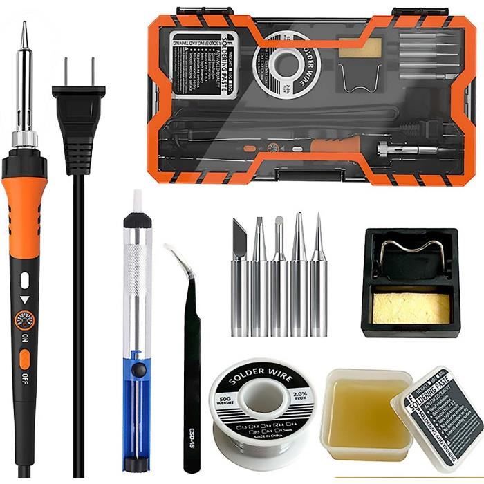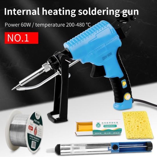 Pistolet a souder portable 60W Chauffage interne avec voyant lumineux Fer à souder 60W température réglable sans plomb é... – Grandado Pistolet à Souder Portatif 60W, Fer à Souder électrique Kit Soudure 3 En 1 Le boîtier en plastique ABS résistant aux chocs garantit un travail en toute sécurité Multifonction 3 en 1 : Ce poste à souder permet de souder, de couper et de dérouiller, ce qui le rend idéal pour le travail des métaux. Fer à souder numérique Pistolet à souder interne portatif de fer à... Haute efficacité : Le fil de soudure de ce poste à souder portatif est directement connecté à l'élément chauffant, ce qui améliore l'efficacité et minimise les dommages aux composants. La température de soudage varie de 180 °C à 520 °C et convient aux fils d'étain d'un diamètre de 0,6 à 1,2 mm C'est un cadeau idéal pour vos proches qui aiment travailler avec des appareils électriques Utilisation polyvalente : Ce poste à souder portable est idéal pour la réparation et l'entretien des smartphones, des circuits imprimés et des ordinateurs de bureau.