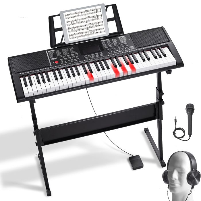 Vous bénéficiez ainsi d'un meilleur effet de pratique. ♫【Jouez et chantez en musique】 Ce pianos numériques est équipé d'un haut-parleur et d'un microphone intégrés. Cadeau Enfant Apprentissage Musique 61 Touches, Clavier Électrique Portable Avec Piano Numérique COSTWAY Piano à clavier 61 touches pour débutants, piano numérique électrique portable avec pupitre, microphone, autocollants Keynote Noir. 49,99 €. Livraison... Vous pouvez jouer et chanter en musique, renforçant ainsi vos compétences et votre confiance en vous. Caractéristiques : Matériau : Plastique Dimensions du piano électronique : Environ 80 x 27 x 22 cm / 31,5 x 10,6 x 8,7 po Poids net : Environ 1700 g / 3,75 lb Contenu du coffret : 1 * piano numérique 61 touches 1 * microphone filaire 1 * pupitre 1 * autocollant pour clavier 1 * adaptateur secteur 1 * manuel d’utilisation Portable et léger, il est facile à transporter, idéal pour jouer à l'intérieur comme à l'extérieur. Transformez n'importe quelle pièce en studio de musique personnel. Il est parfait pour les anniversaires, les réunions de classe et les réunions de famille. Doté de 61 touches, il vous offre la sensation d'un piano traditionnel tout en conservant un design compact et portable. Ce piano electrique adapté aux débutants est doté d'un écran LCD numérique et d'un contrôle du volume réglable pour un réglage optimal du son. ♫【Double alimentation】Le piano numérique peut être alimenté par le bloc d'alimentation standard (inclus) ou par 5 piles AA (non incluses). Max Rhapsody61 - Clavier Électronique 61 Touches Pack Complet Débutant - avec Banc, Stand, Micro et Casque ; Nombre de rythmes. 300 ; Metronome. Oui ; Option(s) du... ♫【Enregistrement et pratique : perfectionnez-vous】 Grâce à la fonction d'enregistrement, vous pouvez enregistrer vos performances pour améliorer vos compétences. ♫【Plusieurs ports pour une expérience créative】 Équipé de haut-parleurs intégrés, d'une entrée AUX, d'une prise casque et d'un port micro, vous pouvez connecter un microphone et un casque sans gêner les autres pendant vos répétitions. Conçu pour les débutants et les enfants, il est facile à utiliser. Clavier Electronique 61 Touches, Piano Numérique LED Portable Avec Microphone Pupitre Autocollants Keynote Sac De Transport 97001500