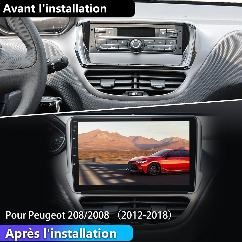 Comparaison avant et après l'installation 6G+128G 8 Cœurs Android Autoradio pour Peugeot 2008 208 2012-2018 【Carplay & Android Auto Intégré】 Prend en charge les méthodes de connexion sans fil et filaire. Autoradio Carplay Autoradio Android 2 + 64G Pour Peugeot 208/2008 2012-2018, Avec écran Tactile Android 13 10.1 Pouces Son grand écran de 10,1 pouces et sa mémoire généreuse de 6 Go de RAM et 128 Go de ROM garantissent une expérience de conduite fluide et intelligente ! CarPlay sans fil et Android Auto AWESAFE 4G Autoradio Android 13 pour Peugeot 208/2008 (6Go 128Go) 10'' Écran Carplay Android Auto GPS Bluetooth WiFi FM RDS SWC ... -25€ dès 249€ d'achat, code... Compatible avec USB, carte SD et entrée AUX pour une lecture audio polyvalente. Veuillez confirmer le modèle et l'année de votre voiture avant d'acheter. Conçu spécifiquement pour la Peugeot 208/2008, cet autoradio remplace parfaitement votre écran d'origine. Son grand écran de 10,1 pouces et sa mémoire généreuse de 6 Go de RAM et 128 Go de ROM garantissent une expérience de conduite fluide et intelligente 【6 Go RAM + 128 Go ROM pour Peugeot 2008】 Autoradio pour Peugeot 2008 utilise le dernier système d'exploitation Android 13, intégrés[6 Go RAM + 128 Go ROM] , vous permettant de découvrir des applications de navigation plus rapides, plus fluides et plus intelligentes., Pour Peugeot 2008 (2012-2018). Plus de Fonctionnalités Affichées Si vous n'êtes pas sûr, vous pouvez m'envoyer la console centrale de votre voiture pour les confirmer. Conçu spécifiquement pour la Peugeot 208/2008, cet autoradio remplace parfaitement votre écran d'origine. 【Navigation GPS & Wi-Fi & Fonction 4G】utoradio Android prend en charge les cartes de navigation en lignevous pouvez téléchargez l'application de navigation en ligne,telles que Sygic, Waze, etc.