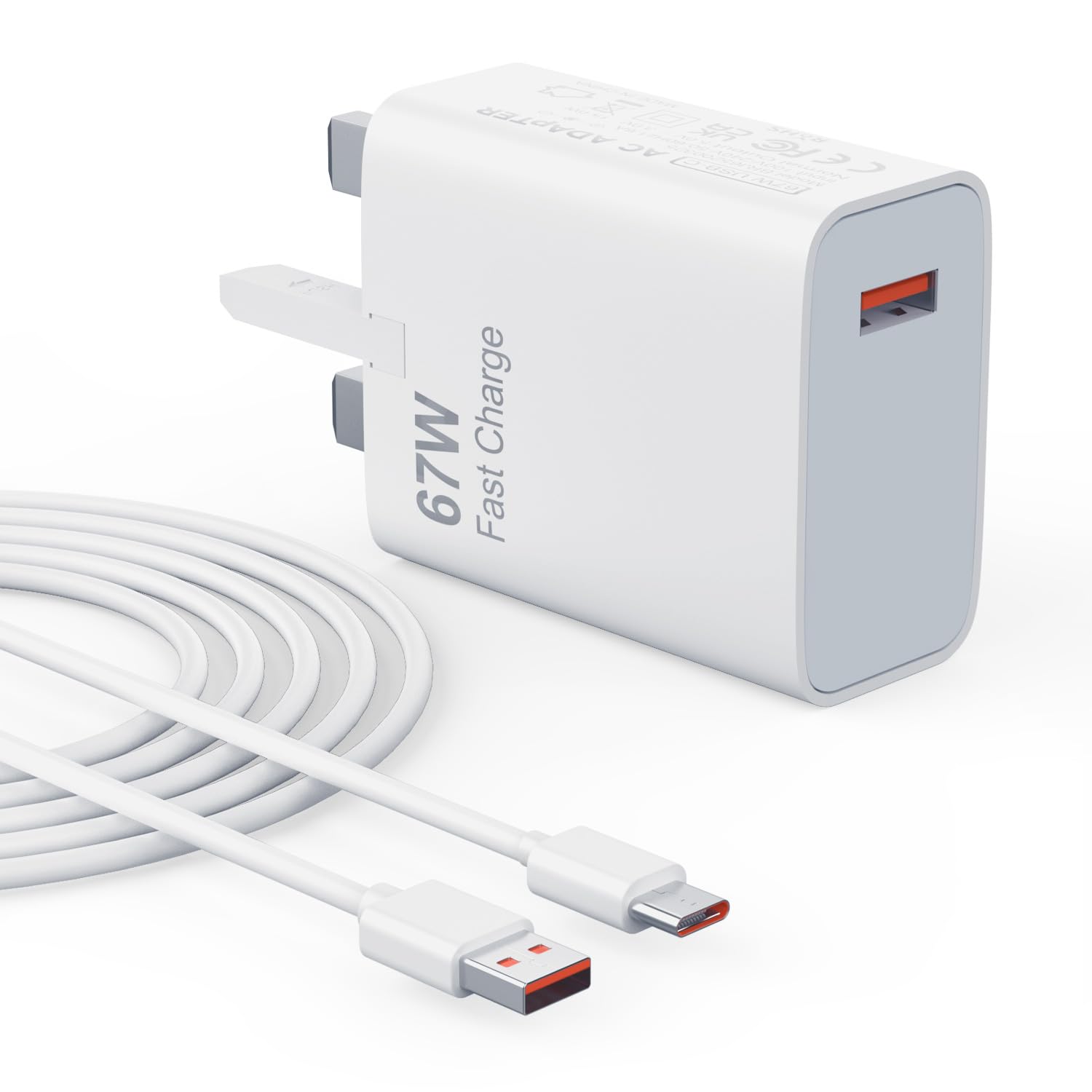 Le câble USB-C inclus de 2mètres est fabriqué en TPE haute résistance avec des connecteurs dorés et une tresse nylon anti-nœuds. 67W Hypercharge Original Ladegerät USB C Ladekabel Netzteil Turbocharge Puces intelligentes régulant la puissance en temps réel. Chargeur Turbo Smartphone Xiaomi 67W Chargeur Rapide USB Pour Redi Note 15 14 13 12 11 10 Pro 5G,Chargeur Turbo Avec 6A Câble Redmi Note 15 Le chargeur reconnaît automatiquement les protocoles de charge rapide spécifiques à chaque appareil (HyperCharge, QC3., 0, PD3., 0) pour délivrer des performances maximales. ) et une enveloppe externe en ABS ignifuge certifié. 67W Chargeur Rapide USB pour Redi Note 15 14 13 12 11 10 Pro 5G,Chargeur Turbo avec 6A Câble... Parfait pour la maison, le bureau ou les déplacements. Pour les performances optimales, utilisez l'appareil éteint pendant la charge. Bénéficiez d'une charge rapide et d'un transfert de données sécurisé avec le câble Mi Turbo Charge 120 W, conçu pour la longévité et la fiabilité Note : La charge ralentit lorsque l'écran est allumé (phénomène normal de protection). Le design compact et la prise murale rabattable en font le compagnon idéal des voyageurs. Compatibilité Étendue - Optimisé chargeur pour Xiaomi Redmi Note 14/15/13/12/11 Pro, Poco X6/M6/X5 Pro, Xiaomi 13 Lite/12X et autres appareils Xiaomi/Redmi/POCO avec charge rapide USB-C. La compatibilité étendue couvre les principales séries pour Xiaomi/Redmi/POCO, notamment les Redmi Note 15/14/13/12/11 Pro, Poco X6/M6/X5 Pro, pour Xiaomi 13 Lite/12X, et bien d'autres. Design Compact Voyage - Format ultra-léger avec prise murale repliable.
