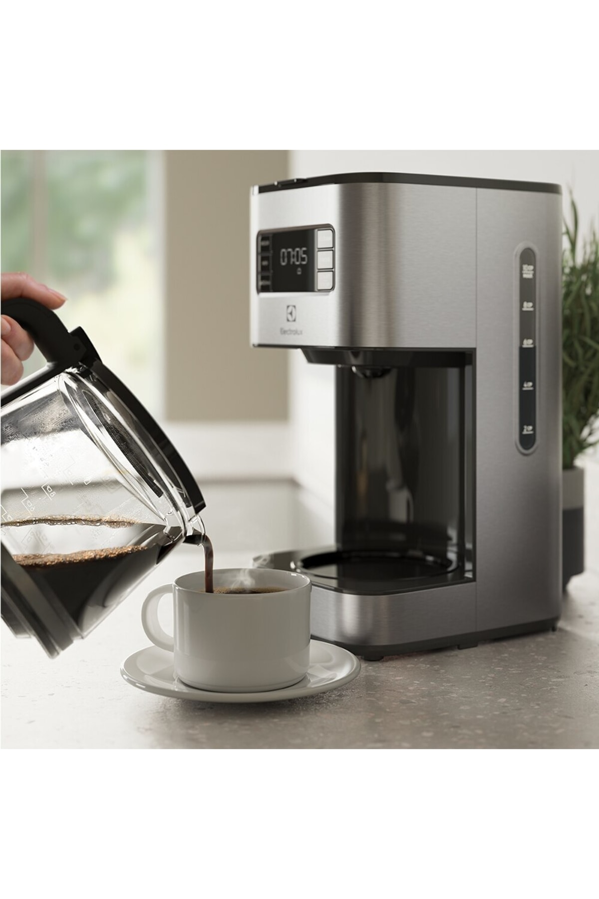 Cafetière filtre Electrolux Create 5 E5CM1-6ST - acier inoxydable E5CM1-6ST ELECTROLUX CSEPEGTETŐS KÁVÉFŐZŐ Cafetière 1000w Inox Electrolux Create 5 E5CM1-6ST Cafetière Goutte à Goutte En Percolateur Cafe Pour un café savoureux et frais dans votre maison à tout moment. Avec le sélecteur d'arômes, vous pouvez obtenir un arôme et un goût intenses dans une tasse de café. Vásárlás: Electrolux E5CM1-6ST Create 5 Filteres kávéfőző árak összehasonlítása, E 5 CM 1 6 ST... Programmez jusqu'à 24 heures à l'avance et asseyez-vous et profitez de votre café., C'est très simple. L'affichage clair et visible du niveau d'eau et de la dose permet de préparer 2 à 10 tasses de café fraîchement infusé. La fonction d'arrêt automatique sécuritaire éteint automatiquement votre machine après 40 minutes. Préparez votre café, restez au chaud et ne vous inquiétez pas d'oublier votre machine ouverte.