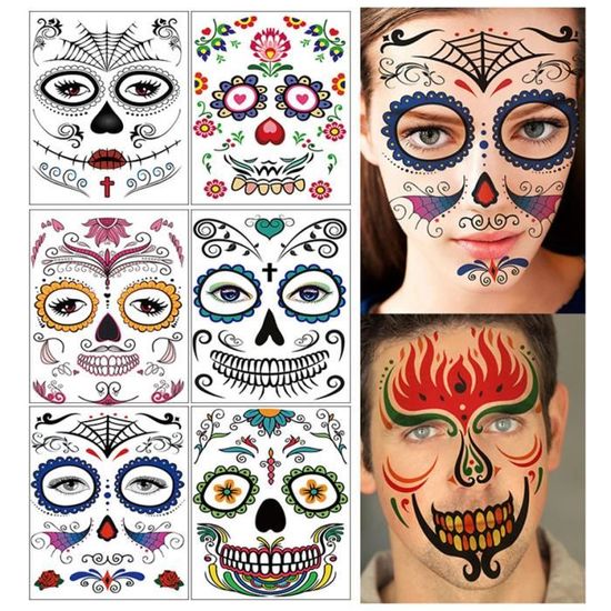 ✔Parfait pour Halloween: ces tatouages lumineux fluorescents pour le visage sont parfaits pour Halloween, le jour des morts, la soirée nocturne, pour les femmes, les hommes, les filles, les garçons et les enfants. Autocollant Maquillage Halloween 6pcs Tatouages De Visage Temporaires Halloween Autocollants Crâne Tatouages Halloween Visage Comprend différents composants de tatouage individuels pour un placement précis et créatif sur le visage, la poitrine ou les mains. Belle Femme Avec Un Crâne En Sucre Et Une Couronne Florale Maquillage... Parfait pour Halloween Ces tatouages faciaux sont parfaits pour les accessoires d'habillage de cosplay de fête d'Halloween, Day of The Dead, Night Party, effrayer le maquillage. ✔Tatouages lumineux: cet autocollant de tatouage pour le visage n'est pas de couleur pendant la journée, mais brillera dans l'obscurité. Le paquet comprend ] Vous obtiendrez 12 pièces lumineuses Halloween tatouages de visage, des tatouages temporaires avec caractéristique glow in the dark... Caractéristiques attrayantes Matériel sûr Ces faux tatouages élégants sont non toxiques, non permanents, sûrs et amusants pour tous les âges, y compris les enfants et les adultes et peuvent être portés n'importe où sur votre corps. Grand design pour les hommes ou les femmes! Vous devez d'abord absorber la source de lumière sous la lumière, le temps de luminescence sera affecté par la lumière et la température. Belle Femme Avec Un Crâne En Sucre Et Une Couronne Florale Maquillage Vibrant Du Jour Morts 818304 1836 ces tatouages temporaires d'Halloween brillent tous dans le noir, vous seriez l'unique de votre fête! ✔Facile à appliquer et à enlever: Facile à appliquer en 10-20 secondes avec juste de l'eau et facilement enlevé en frottant de l'alcool à friction, de l'huile corporelle, de l'huile d'olive.