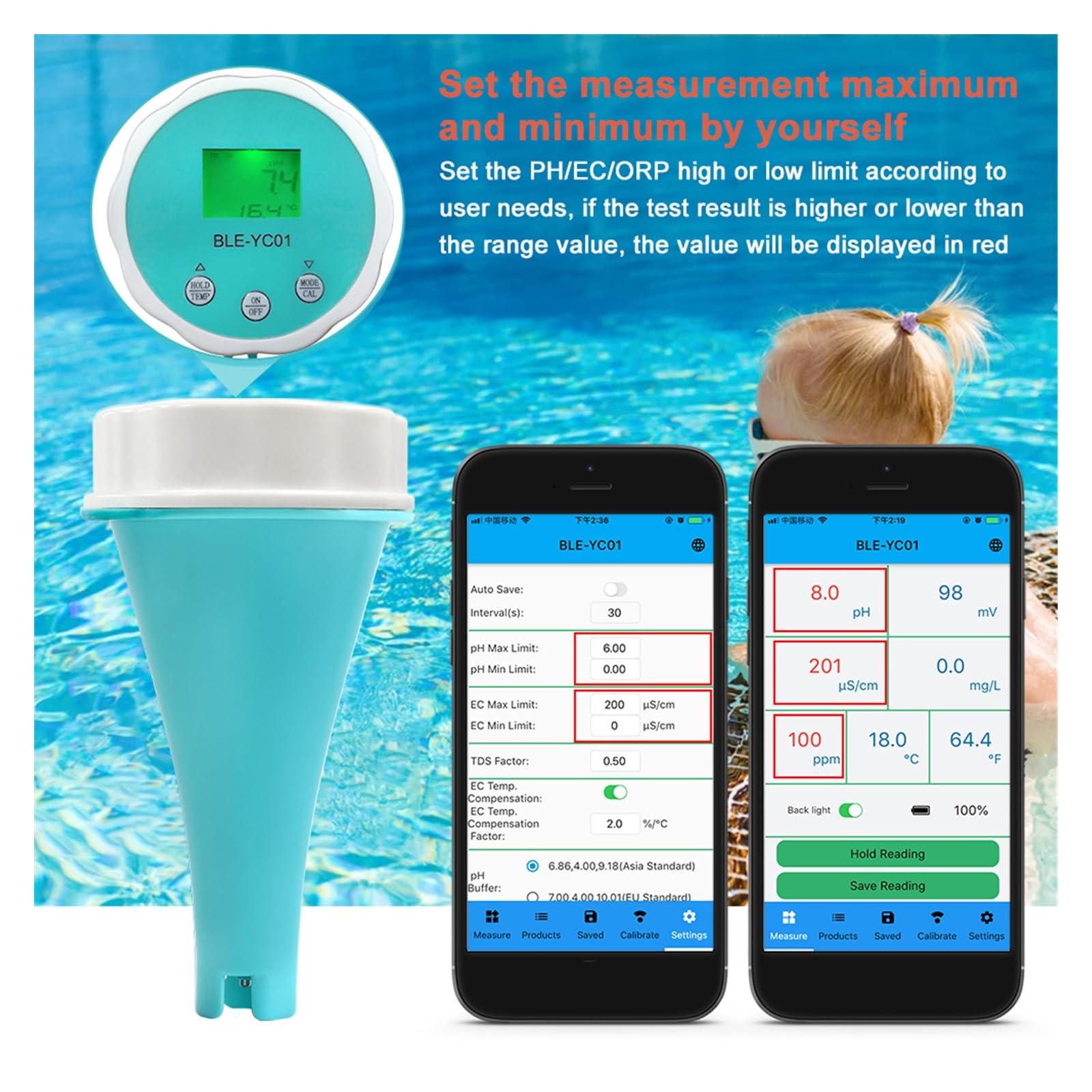 Mesure Précise Eau Testeur Tds Ec Orp Testeur Qualité Eau 7 En 1 - Bluetooth PH TDS EC ORP - Sonde Verre Haute Précision Sonde Haute Sensibilité Testeur Eau Portable Testeur de qualité de l'eau 6 en 1 pH EC TDS sel SG, moniteur Testeur de pH/TDS/EC/température portable 4 en 1 avec compensation de température et arrêt... - Le grand écran LCD affiche un affichage numérique à double rangée, qui peut afficher 2 types de valeurs en même temps. - Le panneau de commande est simple et le fonctionnement du bouton du panneau est simple, pratique et rapide. - Compensation automatique de la température (0°С-50°С), la compensation de température n'est pas affectée par l'environnement et l'erreur de mesure est automatiquement éliminée en fonction du changement de température environnementale. 【Fonctionnalité】- Sonde de haute précision, longue durée de vie, données plus stables. 【Analyseur de la qualité de l'eau】 Cet analyseur de qualité de l'eau multifonctionnel et de haute précision mesure le pH, le potentiel redox, les solides dissous totaux (TDS), la conductivité électrique (EC), le coefficient de fluidité (CF) et la température de l'eau. Plage de mesure : pH : 0,00-14,00 pH ; EC : 0,00-19,99 ms/cm ; ORP : -1999-1999 mV ; CF : 0,0-199,9 CF ; Température : 0-100 ℃ ; TDS : 10-19990 ppm 【Application】 Convient for la mesure de la qualité de l'eau dans l'aquaculture, la surveillance des sources d'eau du robinet, le traitement des eaux usées, les rizières et les unités de recherche scientifique Compteur de pH Alimentaire Professionnel, testeur de pH-mètre avec sonde de température...