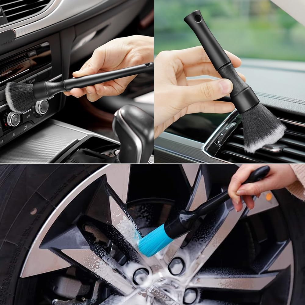Le manche en PP empêche la brosse de rayer la peinture et les surfaces si elle touche accidentellement la voiture. Bonne élasticité, flexible et durable, la poussière n'est pas facile à rester. Brosse Nettoyage Intérieur Voiture 7 Pièces Pinceaux Nettoyage Voiture, Brosse à Détails Automatiques Outil Nettoyage Espaces étroits Sans Rayure pinceau nettoyage voiture parfaite: les pinceau detailing auto sont conçues avec un arc biseauté pour garder votre tableau de bord rapide et sans poussière, ni... 【Quality Material】 : compact et léger, il est facile et confortable à tenir, et ne se sentira pas fatigué après de longues heures d'utilisation. Caractéristiques : Matériau : laine nanofibre + plastique., Couleur : noir. Taille parfaite pour tenir dans le compartiment de rangement. Fenêtres, étagères, appareils électroménagers, meubles de terrasse, ventilateurs de plafond, bateaux, camping-cars et zones difficiles d'accès. Sa structure de poils est stable et profonde, empêchant les poils de tomber après un travail lourd ou une traction. Dimensions : chaque pinceau est 10 x 5 cm. 【Design unique】:La brosse d'esthétique automobile a un design biseauté pour garder rapidement le tableau de bord et la poussière hors du chemin. are propre et poussière; fixation profonde, pas de perte de cheveux après avoir tiré. Pinceau de Détail (Lot de 5), Jeu de Pinceaux à Détails Automatiques... Le manche ne contient aucune pièce métallique. La brosse d'esthétique automobile est parfaite pour nettoyer les intérieurs de voiture tels que les évents de climatisation, la console centrale, le tableau de bord, les sièges en cuir. Le poil est de 3 cm. 27Pcs Lot de Brosse Nettoyage Voiture,Brosse Jante Voiture Pinceau
