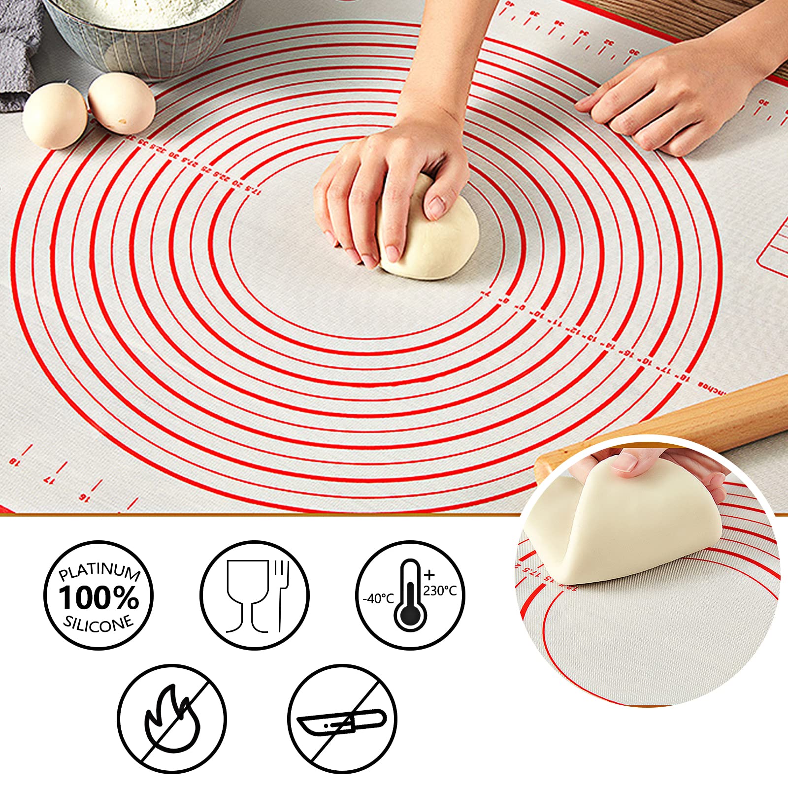 Tapis De Cuisson Antiadhésif En Silicone Pour Pâtisserie, 26 X 29 Cm, Tapis à Rouler, Feuille De Fondant Avec Mesures Rouge 86192571 Tapis De Patisserie Grande Taille Gvolatee Tapis De Cuisson Silicone Rouge 70×50 Cm, Tapis Pâte Avec Accessoire Pâtisserie Grattoir Pâte Kit d'ustensiles de cuisine ménagers, Style Si... – Grandado 【Marque de mesure】 Il y a des lignes d'échelle autour et au milieu du tapis de pétrissage, ce qui est facile à utiliser, et il est équipé d'un couteau à pâte, ce qui vous permet de couper la pâte et de maîtriser la taille de la pâte Tapis de cuisson en silicone rouge - Top 10 de 2025 - Coparatif des... 【Facile à nettoyer】Facile à nettoyer, matériau doux, peut être plié et rangé après séchage, gain de place 【Sûr à utiliser】 Le tapis de pétrissage adopte un processus spécial, la pâte ne colle pas lorsqu'elle est utilisée et il est plus facile à façonner.
