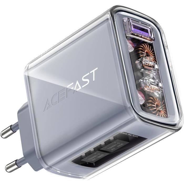 70W USB C Chargeur Rapide, PD 3.0 GaN Chargeur 3 Ports Adaptateur Type C pour MacBook Pro/Air... Ultra-Compact – Idéal en Déplacement & à la Maison Ce chargeur GaN 65W plat (seulement 4,8x3,6x3,3 cm) glisse facilement dans un sac de voyage, étui à téléphone ou tiroir de bureau. MacBook Air M1/M2 (charge optimisée) Chargez téléphone, tablette et casque simultanément sans saturer les prises ! Google Pixel 8/7 (Power Delivery 3., 0)-20W-Lader – 1 Prise, 3 Appareils, 0 Chaos Fin du désordre de câbles ! Combinaison Quotidienne Parfaite : ✔ USB-C 1 : Ordinateurs (MacBook Air, Surface Go) ou charge rapide (iPhone 15, Galaxy S23) ✔ USB-C 2 : Tablettes (iPad Air, Galaxy Tab) ou batteries externes ✔ USB-A : Appareils anciens (AirPods, téléphones Android plus vieux) 65W Chargeur USB C Rapide, 3-Ports Prise USB C GaN Tech PD3.0 PPS avec ) Samsung Galaxy S23/S24 (Super Fast Charging 2., 0) MacBook Air M1/M2 (optimiertes Laden) Google Pixel 8/7 (Power Delivery 3., 0) Maison : Se cache discrètement derrière les meubles ou dans un coin de prise. Adaptateur Secteur 65W Fin Format Plat 70W Chargeur Usb C 4 Ports Pd3.0 Gan Iii Chargeur Pour Macbook Pro Air Multiprise Usb ) et remplace plusieurs chargeurs encombrants. Pourquoi Plus Petit = Mieux ? Plus léger : 60 % plus léger qu’un chargeur 65W standard Avec notre chargeur 3-en-1, une seule prise suffit pour votre téléphone, tablette et casque – plus de câbles emmêlés, ni de multiprises surchargées. Tooq Chargeur Mural GaN 2 USB-C/PD USB-A/QC 65W - Couleur Blanche couleur Blanc en stock... Haute Performance avec GaN Notre chargeur utilise le Gallium Nitrure (GaN) – la technologie de charge nouvelle génération. Profitez d’une efficacité maximale : ✔ 60 % de batterie en 30 min – idéal pour une recharge express ✔ Charge complète en ~1 heure (selon appareil) ✔ Jusqu’à 50 % plus rapide qu’un chargeur 20W standard Compatibilité avec les Top Appareils : iPhone 15/14/13 Pro (jusqu’à 60 % en 30 min) TECHNOLOGIE AVANCÉE : Intègre la technologie GaN (Nitrure de Gallium) pour une meilleure efficacité énergétique et une charge plus rapide Comparé aux chargeurs en silicium, il offre : ✔ 30 % d’efficacité énergétique en plus – moins de gaspillage, plus de puissance ✔ Moins de chaleur – préserve la batterie (idéal pour les charges rapides fréquentes) ✔ Taille compacte – 65W dans un format minimaliste Prises libres : Ne bloque pas la seconde prise (contrairement aux modèles cubes) PUISSANCE MAXIMALE : Chargeur USB-C 65W avec technologie GaN, offrant une charge rapide et efficace pour vos appareils compatibles PD3., PORTS MULTIPLES : Équipé de 3 ports de charge permettant de recharger simultanément plusieurs appareils avec une distribution intelligente de la puissance