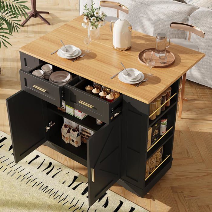 Îlot de Cuisine, Desserte avec Séparateurs Ajustables et Porte-Torchons Leur conception facilite l'accès tout en préservant l'ordre. îlot Cuisine Mobile Chariot 129*46(71)*91.5 Cm Chariot De Salle à Manger / Buffet De Salle à Manger îlot De Cuisine Mobile Les deux tiroirs spacieux offrent un espace de rangement supplémentaire et sont parfaits pour ranger de petits objets ou organiser vos affaires. Dimensions du produit : ce chariot de cuisine mesure 140 cm de long, 40 cm de large et 93,5 cm de haut. Il est équipé de panneaux latéraux rabattables qui peuvent être dépliés pour former une table à manger 129x46(71)x91.5 cm chariot de salle à manger, buffet bleu, plan de... Il convient parfaitement comme plan de travail de cuisine et est pratique pour couper les légumes, préparer les repas et autres activités. Cette cave à vin multifonctionnelle et mobile améliore la qualité de vie. La longueur totale des panneaux latéraux pliés est de 70 cm une fois dépliés. Les roues pivotantes à 360 degrés, les deux roulettes pivotantes verrouillables et les trois roulettes pivotantes permettent au chariot de restauration de pivoter librement dans toutes les directions. Robuste et durable, ce matériau résiste aux contraintes d'un usage quotidien. Détails du produitDimensions du produit : Dimensions hors tout (déplié) : 140 x 70 x 93,5 cm (L x l x H)Dimensions hors tout (plié) : 140 x 40 x 93,5 cm (L x l x H)Matériaux : Métal, MDFCharge maximale : 50 kgMontage : 30 minutesContenu de la livraison : Un îlot de cuisine, pièces à monterNombre de colis : 2