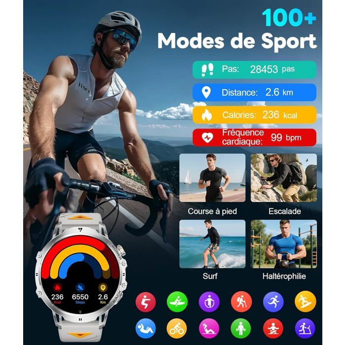 Des fonctions supplémentaires comme le contrôle à distance de l’appareil photo, la météo, le changement de langue, les rappels de sédentarité, l’alarme, le contrôle de la musique et les rappels d’hydratation optimisent à la fois votre condition physique et votre productivité quotidienne. Légers et respirants, ils conviennent à toutes les activités. 1 Batterie 1000mAh 2 Normes militaires 1 Appels Bluetooth 2 Rappel de message 3 Assistance vocale Montre Sport Lampe LED Montre Connectée LIGE Homme 1,75" HD Écran, 1000mAh, 120+ Modes Sportifs, Étanche IP68 - Téléphonie Montre Fréquence Cardiaque Sommeil 【2 Bracelets & Cadrans Personnalisés】Montre connectée homme est livrée avec 2 bracelets interchangeables : deux bracelets en silicone doux et agréable pour la peau, adaptés à un usage quotidien ou au sport. Que vous soyez en course nocturne, en camping, en promenade dans des zones peu éclairées ou face à une urgence inattendue, cette montre connectée vous offre une source de lumière fiable et pratique à portée de main. Idéale pour Noël, la Saint-Valentin, les anniversaires et autres occasions spéciales. Compatible avec les smartphones Android 5., 1+ et iOS 9., 0+. LIGE Montre Connectée Homme avec Appel Bluetooth Assistant Vocal, 1.39 Avec plus de 150 cadrans et la possibilité de télécharger vos propres photos, vous pouvez changer de style selon votre humeur, votre tenue ou l’occasion, alliant ainsi technologie et élégance à votre poignet. 【Lampe de poche LED intégrée avec 3 modes】Conçue pour les aventures en plein air et la sécurité nocturne, montre connectée pour hommes intègre une lampe de poche LED avec trois modes d’éclairage : lumière forte, clignotant et SOS. Notre équipe d’assistance dédiée répond à vos demandes sous 24 heures. 【120+ Modes Sportifs & Outils Intelligents】Avec plus de 120 modes sportifs incluant course, cyclisme, exercices aérobiques et activités en plein air, le tracker enregistre avec précision les calories brûlées, les pas et la fréquence cardiaque. Lampe de poche LED intégrée avec 3 modes]Conçue pour les aventures en plein air et la sécurité nocturne, montre connectée pour hommes intègre une lampe de poche LED avec trois modes d'éclairage Batterie Grande Capacité 1000mAh]Montre connectée militaire pour hommes est équipée d'une batterie de 1000mAh, soit le double de la capacité des montres... Dotée d’un algorithme IA ultra-économe de pointe, elle réduit la consommation d’énergie tout en prenant en charge les modes sportifs. Recevez instantanément les notifications de WhatsApp, Twitter, Facebook, Instagram et plus encore, afin de ne jamais manquer un message ou un appel important, que ce soit pendant vos entraînements, vos réunions ou vos activités quotidiennes. 【Appels & Notifications Bluetooth 5., 2】Équipée de la technologie Bluetooth 5., 2 avancée, cette montre connectée garantit une connexion plus rapide et un signal plus stable. La fonction de respiration contribue à réduire le stress, améliorer la concentration et maintenir l’équilibre mental dans un mode de vie trépidant. 【Parfait pour un usage personnel ou comme cadeau】Le coffret de la LIGE montre connectée EF12 comprend la montre, 1 bracelet en acier inoxydable, 2 bracelets en silicone, un câble de charge, un outil de réglage et un manuel d’utilisation – prête à l’emploi dès la sortie de la boîte. 【Écran Tactile HD 1,75】Montre intelligente homme est dotée d’un grand écran tactile HD de 1,75 pouce avec une résolution nette de 360×360, offrant des couleurs vives et réalistes.
