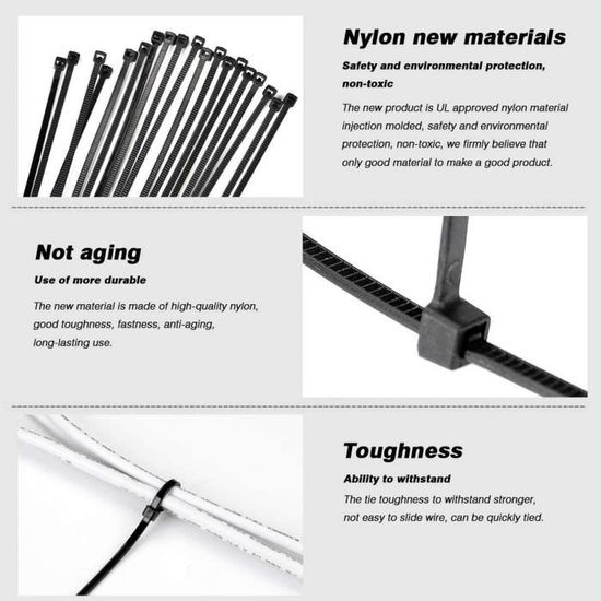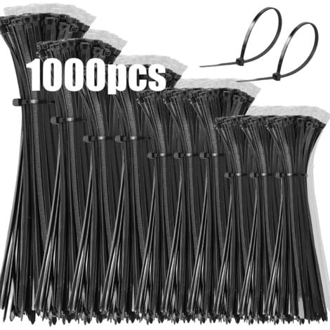 Serre-câbles Noirs Serre-câbles Industriel Noir Attaches Câble Heavy Duty 270mm X 8.8mm - Lot De 50 - Nylon Résistant UV - Pour Intérieur/Extérieur Fixation Heavy Duty Serre-câbles Noirs 300mm Collier de Serrage 300 mm x 4,8 mm, Attache Câble, Serre Câbles Rilsan Lot de 100 serre-câbles réutilisables en plastique jaune, 300 mm x 7,5... Serre-câbles larges : les clips de câble mesurent 4,8 mm de large, ce qui assure une grande résistance à la traction et un maintien sûr dans une variété d'applications. Serre-câbles résistants aux UV - Conçu pour l'extérieur : les serre-câbles noirs résistants aux UV résistent au soleil, à la pluie et au froid. Idéal pour les installations extérieures à long terme, par exemple par exemple sur des clôtures ou des chemins de câbles. avy duty, Attache-câbles, attache-câbles fins, serre-câbles extra longs, accessoires d'installation, installation de câbles, serre-câbles stables, résistants aux UV, résistants aux intempéries, très résistants, résistants aux températures, au gel, à la neige, accessoires d'isolation, serre-câbles pour secteur électrique, équipement domestique, serre-câbles, serre-câbles, plomberie, industrie de construction, construction, modélisme, bricolage, serre-câbles, serre-câbles, passe-temps, fixations. Solides, résistants à la déchirure et durables - Résistants aux UV - Haute résistance à la traction - Parfaits pour les câbles, les tuyaux, l'installation électrique ou le montage. Utilisation polyvalente – à la maison, au bureau ou pour une utilisation professionnelle : que ce soit comme serre-câbles long, serre-câbles grand ou pour la gestion des câbles, les serre-câbles noirs vous permettent de mettre de l'ordre dans n'importe quel projet. Contenu de la livraison : serre-câbles de 300 mm (1000 pièces), serre-câbles noirs de 300 x 4,8 mm. Assortiment de Fermetures à Glissière : Set de 1000 colliers de serrage. · ⌚ Conception Autobloquante