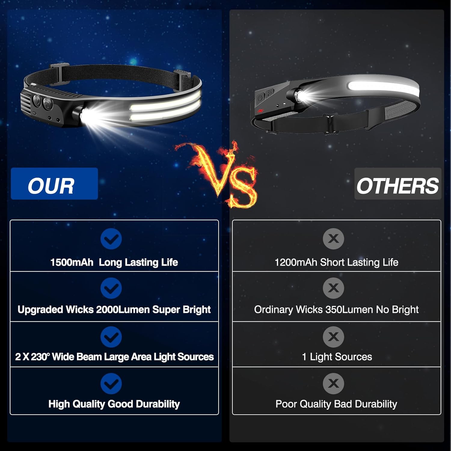 ÉTANCHE IPX5 ET RECHARGEABLE PAR USB : la lampe frontale LED rechargeable est étanche IPX5 et protège contre les projections d'eau provenant de toutes les directions. Grâce à sa simplicité d'utilisation, elle perce l'obscurité – l'outil parfait pour le camping et les travaux manuels La lampe frontale atteint une luminosité maximale de 2000 lumens et une portée allant jusqu'à 300 mètres. Grâce à son support stable, la lampe ne bouge pas et résiste même aux terrains les plus difficiles La batterie intégrée de 1500 mAh offre une autonomie de 3 à 8 heures lorsqu'elle est complètement chargée. ÉTANCHE IPX5 ET RECHARGEABLE PAR USB : La lampe frontale est étanche selon la norme IPX5,ce qui empêche les éclaboussures d'eau sous tous les angles. Vous n'avez pas besoin de vous inquiéter s'il pleut ou neige soudainement Vous pouvez retourner la lampe frontale pour n'importe quelle raison si vous n'êtes pas satisfait de votre achat. Le produit ne pèse que 0,14 livre (environ 64 g). La lampe frontale LED COB fournit un éclairage uniforme et extrêmement lumineux avec un large champ de vision (luminosité de 2000 lumens, angle d'éclairage de 230°). Frontale étanche IPX5 Lampe Frontale LED Rechargeable, Ultra Puissante Lampe à 8 Del De 18000 Lumens, Torche Frontale Tanche Et Lger Parfait Pour Le Camping La Pche La Cave Le Jogging Et La Randonne 62185435 Lampe 2000 Lumens Capteur Mouvement EN STOCK : Lot de 2 Lampe Frontale Rechargeable, Torche Frontale LED Puissante avec Lumière , 2 Modes D'éclairage, IP65 Étanche Lampe Frontale LED pour La... Tous les clients bénéficient d'un droit d'échange de 180 jours. LARGE GAMME D'UTILISATIONS ET CADEAU IDÉAL : les frontale rechargeable à LED sont le cadeau idéal pour tous ceux qui aiment les sports de plein air. Le bandeau hautement élastique et respirant est spécialement conçu pour les tours de tête européens et américains Vous pouvez ainsi faire vos achats en toute sérénité Lampe ontale Ultra Puissante pas cher - Meilleures ofes neuf Elles sont parfaites pour courir la nuit, faire du vélo, camper, grimper, pêcher, faire de la randonnée et promener son chien. 5 MODES D'ÉCLAIRAGE POUR TOUTES LES SITUATIONS ET INDICATEUR DE BATTERIE INTELLIGENT : Appuyez sur le bouton marche/arrêt pour passer d'un mode à l'autre : lumière COB forte, lumière COB faible, lumière COB-XPE forte, XPE forte, mode stroboscopique, détecteur de mouvement. L'indicateur de batterie vous aide à contrôler la consommation de la batterie. Vous pouvez la contrôler en agitant la main devant d'autres objets