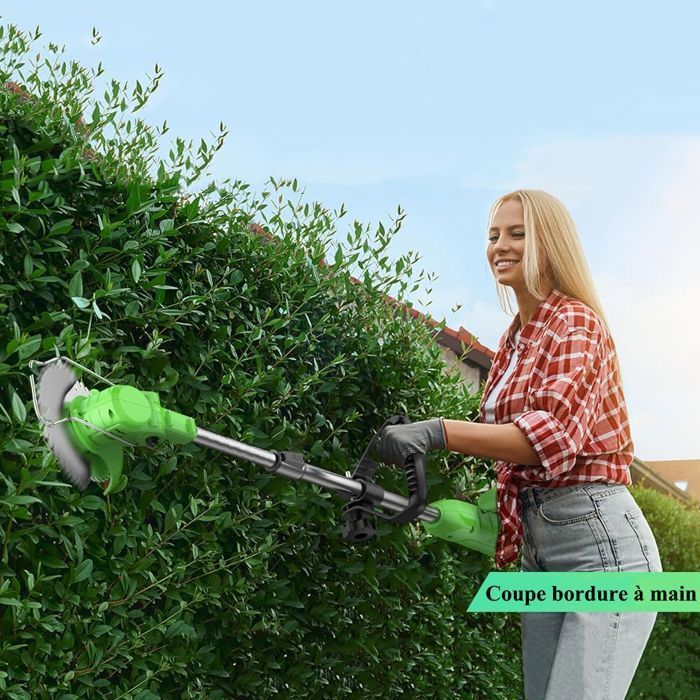 Corde pour couper l'herbe : nouvelle croissance. Débroussailleuse sans fil 21V - Coupe bordures avec Capot de protection Batterie puissante et durable - Comprend 1 batterie au lithium de 21 V. Outil Jardin Multifonction Tête Pivotante Débroussailleuse électrique 8 En 1, 2 Batteries 21 V, Coupe-bordures Outil Jardin Sans Fil 2 Batteries 21V Lames en plastique : couper l'herbe délicate. Herbe douce Avertissement De Sûreté Des conseils de sécurité sur l'utilisation correcte et les dangers potentiels pendant le fonctionnement sont susceptibles d'être fournis. Best Direct Rotorazer Débroussailleuse électrique 8 en 1, 2 batteries... Elle est sans fil et légère, résistante aux enchevêtrements et très facile à utiliser. Multifonctionnel et pratique : avec les différents types de lames, vous pouvez vous occuper des travaux les plus difficiles. Coupe Bordures,Tondeuse à Gazon sans Fil avec 2 Paquets de Batterie au... 8 en 1 - La tondeuse électrique Rotorazer possède un design léger et ergonomique. Veuillez suivre les instructions dans le manuel d'instructions (français non garanti). Les bobines en plastique sont adaptées pour tondre l'herbe douce, les lames métalliques en acier inoxydable sont adaptées pour couper les pelouses, les mauvaises herbes et les petits arbustes. Lames de scie : élagage des arbustes et des branches plus épaisses. Moteur en cuivre pur haute performance.