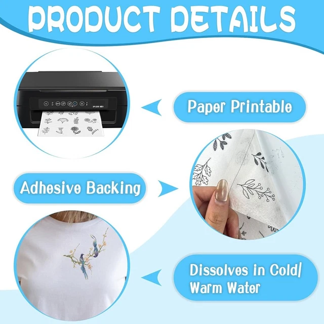 Comparatif des meilleurs films hydrosolubles pour la broderie En raison de différentes mesures manuelles, veuillez permettre une différence de taille de 1 à 2 cm. Papier à Broder Soluble 8 Pièces De Papier De Stabilisateur De Broderie Hydrosoluble Imprimable Papier Hydrosoluble Broderie Spécification: Nom du produit: Paper de broderie Lavage Poids du produit: 80g Taille du produit: environ 21,4x28cm / 8., 43x11,02 pouces Matériel produit: papier Liste des produits: 1 SET * Paper de broderie Lavage Note: En raison de différents paramètres d'éclairage et d'écran, la couleur de l'élément peut être légèrement différente de l'image. Sans BPA ni BPS] : Parfait pour vos besoins quotidiens ; ce papier thermique haut de gamme est sans BPA ni BPS, non toxique et sans danger pour la santé.[Compatible avec les imprimantes thermiques A4] : Le papier thermique Itari authentique est doté d'un revêtement thermique de haute qualité avec une protection thermique uniforme et une surface lisse et plane, ce qui le rend compatible... Film soluble dans l'eau pour broderie, fournitures de points de croix, artisanat de broderie fait à la main, doublure adhésive rapide, 5/10 pièces · Produit... Le papier de broderie est pratique Le papier de broderie lavé est excellent Formule adaptée à la peau: élaborée à partir de matériaux naturels, ce papier à broder lavé est doux et non irritant, ce qui le rend adapté à toutes sortes d'utilisateurs Transformez facilement vos projets de broderie en utilisant notre papier de de broderie. Effet soluble dans l'eau: avec sa formule soluble dans l'eau, faites simplement tremper une utilisation pour obtenir une dissolution sans effort, maximisant l'efficacité des tâches de nettoyage. Description du produit Document de broderie dissoluable, papier de de broderie