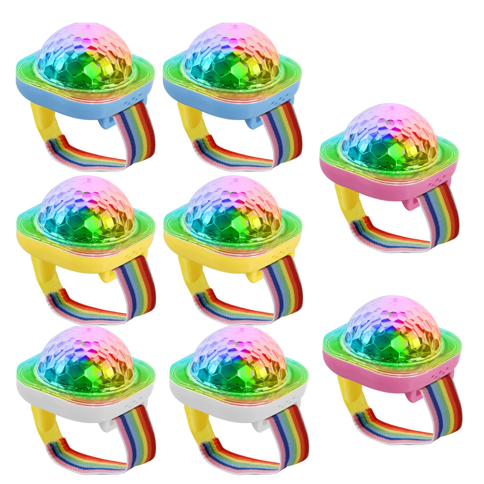 5 modes d'éclairage dynamiques : Vivez une ambiance festive vibrante avec le bracelet lumineux SWTHM Party Ball ! Bracelet Lumineux 8 Pièces 5 Modes Bracelet Boule Disco, 8 Pièces LED, éclairage De Scène, 5 Bracelets LED Boule Disco Lumière d'ambiance rechargeable : Chaque bracelet SWTHM Party Ball a une autonomie de 3 à 4 heures après une charge complète (câble USB inclus). Partagez-les avec vos amis grâce aux sangles velcro réglables (adaptées à tous les poignets) ou fixez-les sur une surface lisse ou plane de votre voiture, chambre, etc. Idéal pour les soirées en boîte, les anniversaires et les festivals Compacte et portable : La boule lumineuse magique est petite, légère et facile à transporter. Boule magique Disco Ball haut-parleur Bluetooth, USB, colorée, rotative à 360 de L'éclairage change au rythme de la musique. Le bracelet boule DlSCO vous offre une expérience unique. Spécifications : Type d'article : Bracelet lumineux boule de fête Matériau : Plastique, Velcro Dimensions : 5,1 x 5,1 x 3,5 cm Longueur du bracelet : 22,5 cm Capacité de la batterie : 200 mAh Modes : Commande vocale, Changement progressif, Saut, Changement d'impulsion, Clignotant Contenu : 8 bracelets lumineux boule de fête 8 bracelets lumineux 8 ventouses 8 câbles de charge grâce aux ventouses (incluses). Les bracelets lumineux égayent vos soirées et la boule lumineuse portable peut également être offerte en cadeau à vos proches Lampe de scène RGB DJ LED lumière boule commande vocale Simple à utiliser : la lampe disco peut être utilisée comme une dragonne avec un bracelet, et peut également être fixée sur un plat ou lisse car elle est... Fixation par ventouses aux fenêtres, miroirs ou tables. Cette lumière disco peut être utilisée pour les fêtes, les karaokés, les concerts et les spectacles de danse. Il apporte des lumières dansantes à n'importe quel événement et crée une atmosphère vibrante et entraînante pour un moment inoubliable Caractéristiques : Utilisez-la comme montre boule disco ou mini-bracelet LED !