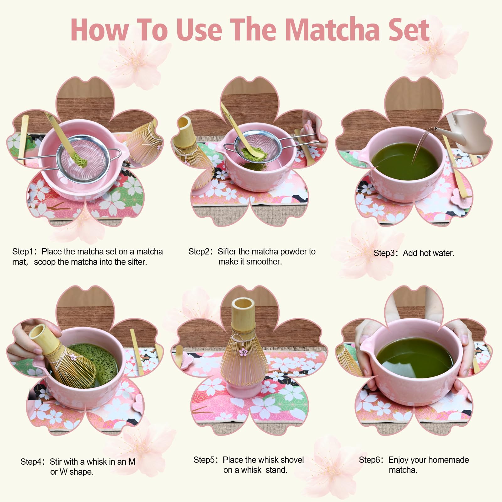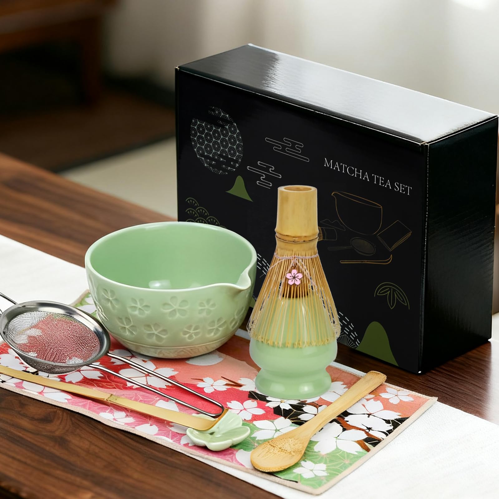 Après tamisage, la poudre est plus fine, ce qui facilite l'infusion et améliore le goût. 【 🍵 Set à matcha 8 pièces motif fleurs de cerisier】Ce kit matcha complet comprend 1x bol à matcha avec bec verseur , 1x porte-brosse à thé en céramique, 1 tamis en acier inoxydable, 2 cuillères à matcha (louches), 1 fouet à matcha, 1 serviette en coton (chakin) et 1 support pour cuillère en céramique. Cette brosse en bambou mélange rapidement et soigneusement la poudre de matcha et l'eau, créant ainsi une mousse fine et donnant à votre matcha une texture délicate. Tamis à poudre de matcha : ce tamis résout le problème de l'agglutination de la poudre de matcha due à l'humidité. Test de l'ensemble Buucup : un kit complet de 7 pièces pour le matcha Support de rangement : le fouet à thé et la cuillère à thé sont chacun livrés avec leur propre support en céramique, ce qui facilite le séchage et le rangement et empêche la déformation et la prolifération bactérienne. Il couvre l'ensemble du processus, de la prélevé et du tamisage de la poudre à l'infusion et à la conservation, et rend tout accessoire supplémentaire superflu. Kit Matcha Complet 7 Pièces en Bambou et Céramique - Fouet, Bol... 【🍵 Cadeau idéal pour les amateurs de matcha】 Ce set de 8 accessoires est une présentation parfaite du matcha. Cet ensemble comprend huit ustensiles de base (une tasse à thé en céramique, un fouet à thé en bambou, une cuillère à thé en bambou, un support pour fouet à thé, un support pour cuillère à thé, un torchon en coton et un tamis à poudre de matcha). 【🍵 Fouet à matcha professionnel】 Ce fouet à matcha est fabriqué à la main et possède des poils fins. Set Préparation Matcha 8 Pièces Matcha Kit - Kit Matcha Complet Ensemble Fouet En Bambo Bol A Matcha Ensemble de fouet à matcha – Fouet à matcha, cuillère traditionnelle... C'est un outil indispensable pour la préparation du matcha.