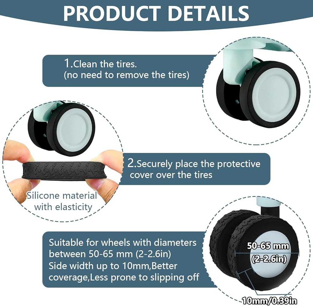 Pour Chaises De Bureau Roulettes Lot De 8 Protections De Roues De Valise En Silicone Violet, étanches Et Facile à Enfiler Sans Outil ROULETTE compatible valise Américain Tourister A-90 - LE PETIT ROYAUME Roue De Valise Protection Valise Avion Lot De 8 Housses De Protection De Roue En Silicone Pour... 8 g par pièce Taille compatible : diamètre de roue 50–65 mm ; largeur env. Contenu de l’emballage : 8 × Housse de roue de valise en silicone Matériau élastique : protection roue valise en silicone souple, résistant, lavable et réutilisable, protège roues et sol Paramètres du Produit Matériau : Silicone Couleur : Noir Dimensions : Ø 52 mm ; largeur de bande 15 mm ; largeur latérale 10 mm Poids : env. Caractéristiques : La couvre-roue de valise avec rebord latéral élargi de 10mm ; design asymétrique réduit bruit, vibration et rayures Taille & Compatibilité : La protection de roue de bagage diamètre 52mm, largeur 15mm ; convient aux roues Ø50–65mm, largeur 12mm ; lot de 8 pour valises à 8 roues Facile à utiliser : Enfiler la protege roues de valise silicone dans le sens de rotation ; installation en quelques secondes, sans outil Roues de Rechange - DIOCHE - 2 Roues Silencieuses - Faciles à Installer - Universelles - Durables