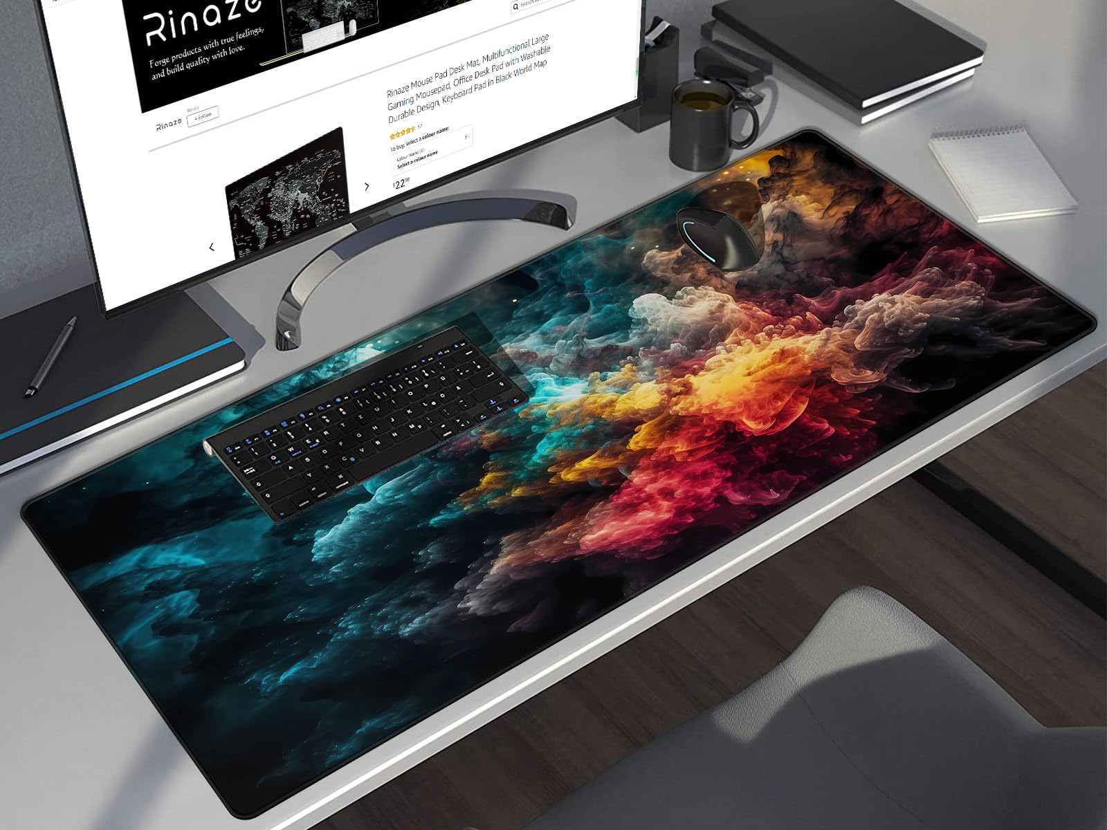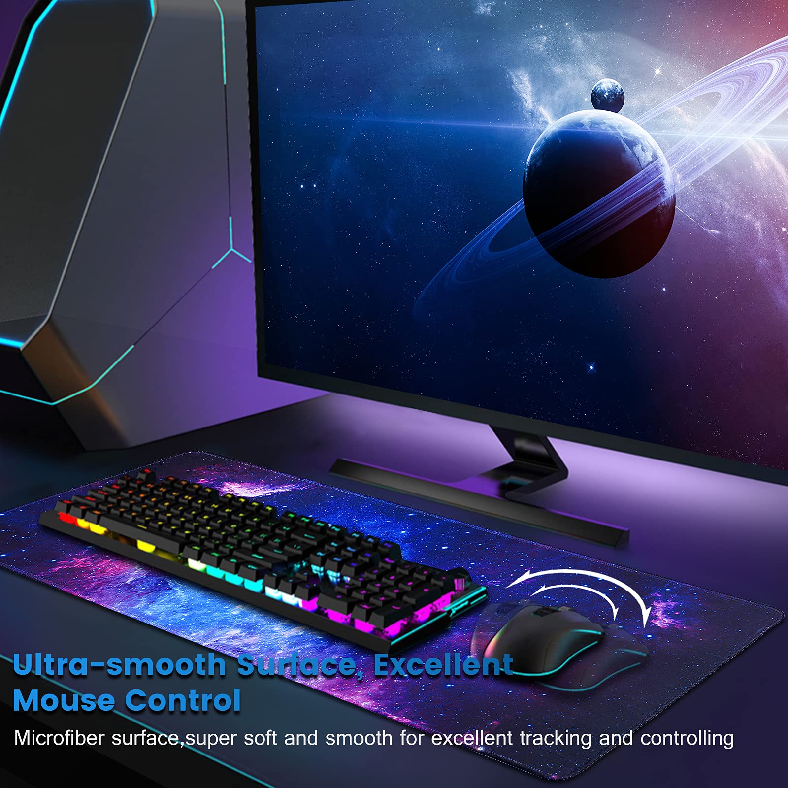 Améliorez votre setup gaming ou bureau avec ce tapis de souris XL 80x30cm ! Assez grand pour accueillir clavier, souris et même ordinateur portable. Tissu... Notre tapis de souris de bureau complet de 3 mm d'épaisseur donne à vos mains un confort optimal et est fabriqué en matériau de haute qualité qui offre un... Tapis Bureau De Jeu étendu Avec Bords Cousus, Tapis De Souris XL (80 X 30 Cm) Avec Design Brillant, Sous-main De Clavier Avec Base Antidérapante, Sous-main De Bureau Multifonction Grand Tapis De Souris Grand tapis de souris de jeu étendu avec tissu micro-tissage