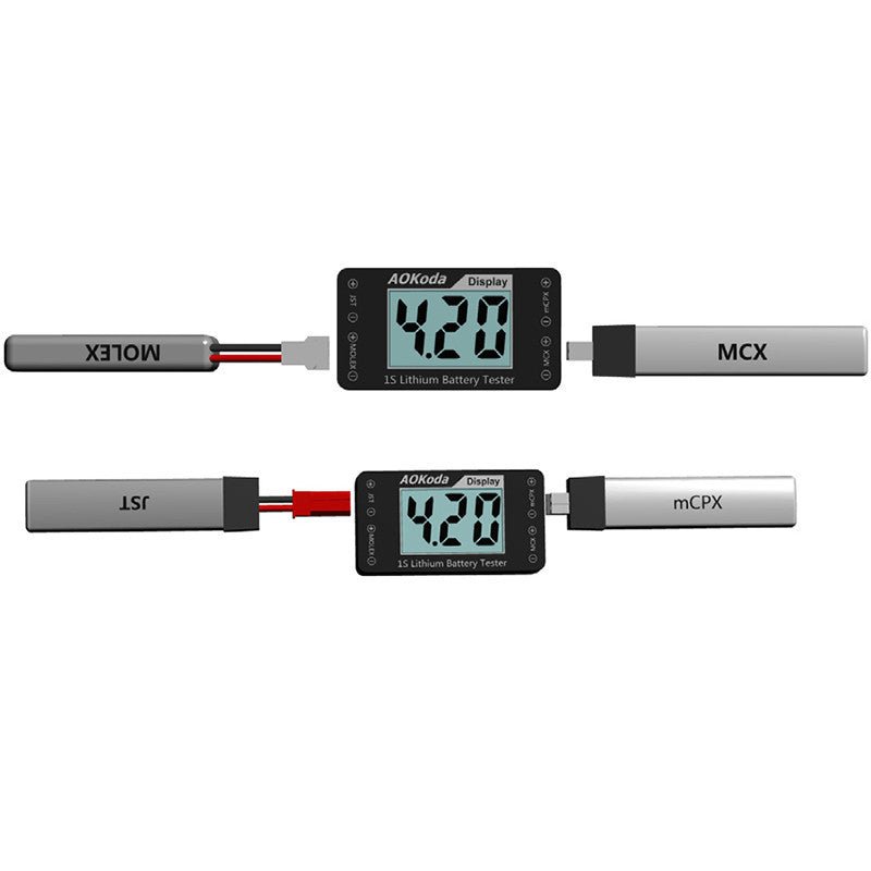 Testeur JST MOLEX MCPX MCX DollaTek 8-80V 100A Voltmètre De Courant De Batterie Affichage LCD Testeur Port Multiple JST MOLEX DollaTek 18650 Capacità batteria Modulo tester LCD MAh MWh Porta tipo C Display digitale Misurazione batterie al litio Tester rilevatore di potenza DollaTek 2 pièces 3S 12V 18650 10A BS Chargeur Li-ION Batterie au... Prend en charge les ports JST (2,54 mm), MOLEX (2 mm), mCPX (2 mm), MCX (1,25 mm). Quatre interfaces de batterie sont prises en charge Life, LiPo, LiHv Affichage numérique du tube rouge de 0,9 cm, affichage de la tension de la batterie, précision de détection de tension de la batterie est précise à 10 mV. Section de la batterie : 1 cellule. Caractéristiques : Prend en charge quatre interfaces de batterie micro UAV standard, Plug and Play. Puissance du détecteur de tension : 0,05 W. Type de batterie : LiFe 3,3 V/LiPo 3,7 V Précision de détection de la tension : 3,65 V ± 0,01 V, 4,20 V ± 0,01 V., 35 V ± 0,01 V Haute précision : affichage numérique rouge de 0,9 cm qui montre la valeur de tension de la batterie, et la précision de détection de tension de la batterie est précise à 10 mV. Forte adaptabilité