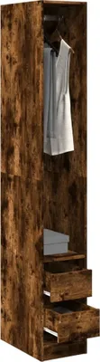 Fabriquée en bois d'ingénierie de haute qualité, cette armoire allie durabilité et esthétique. Avec ses trois étagères spacieuses et sa barre à vêtements, elle... Fabriquée en bois d'ingénierie de haute qualité, cette armoire allie durabilité et esthétique. Équipée de trois étagères spacieuses, elle est idéale pour ranger vos vêtements pliés, vos sacs ou vos boîtes de rangement. Assemblage requis : Oui (instructions fournies), Quantité par colis : 2 Elle répond à tous vos besoins de rangement, maximisant l'espace disponible. Organisez votre garde-robe avec élégance Grand espace de rangement : l’organisateur de placard offre beaucoup d’espace pour organiser vos vêtements et vos sacs. vidaXL Garde-Robe Sonoma Gris 30x50x200 cm Bois d'ingénierie Design élégant et encombrement minimal Le troisième atout principal est son design épuré et son format compact. Son design épuré et ses dimensions compactes (30 x 50 x 200 cm) en font un choix idéal pour optimiser l'espace dans votre chambre, dressing ou bureau. Garde-robe Chêne Fumé 30x50x200 Garde-robe Chêne Sonoma 80x50x200 Cm Bois D'ingénierie | Leroy Merlin Armoire Sans Penderie Avec ses trois étagères spacieuses et sa barre à vêtements, elle offre une solution de rangement polyvalente pour vos vêtements, sacs et accessoires. Profitez d'un rangement organisé et accessible, tout en ajoutant une touche d'élégance à votre intérieur. Découvrez notre garde-robe en chêne fumé, conçue pour apporter ordre et style à votre espace de rangement. Faites de l'ordre dans votre armoire et choisissez facilement votre tenue grâce à cette garde-robe ! Matériau robuste et durable : le bois d'ingénierie est d'une qualité exceptionnelle avec une surface lisse et présente également résistance, stabilité et résistance à l'humidité Son encombrement réduit (30 cm de largeur, 50 cm de profondeur) et sa hauteur de 2 mètres en font la solution idéale pour les petits espaces (chambre, dressing, bureau), créant une aire de rangement optimale sans sacrifier l'esthétique. Organisation spatiale et capacité de rangement généreuse Le deuxième argument majeur est son organisation intelligente et son grand espace de stockage. Design élégant et compact : grâce à ses lignes épurées et à son design minimaliste, l'armoire s'intègre parfaitement à votre pièce et elle est également parfaite pour les petits espaces grâce à sa taille compacte. Dimensions : 30 (L) x 50 (P) x 200 (H) cm Déclutterez Votre Intérieur ! L'étagère est idéale pour les boîtes et les vêtements pliés, tandis que vous pouvez accrocher vos tenues plus longues sur la barre à vêtements.