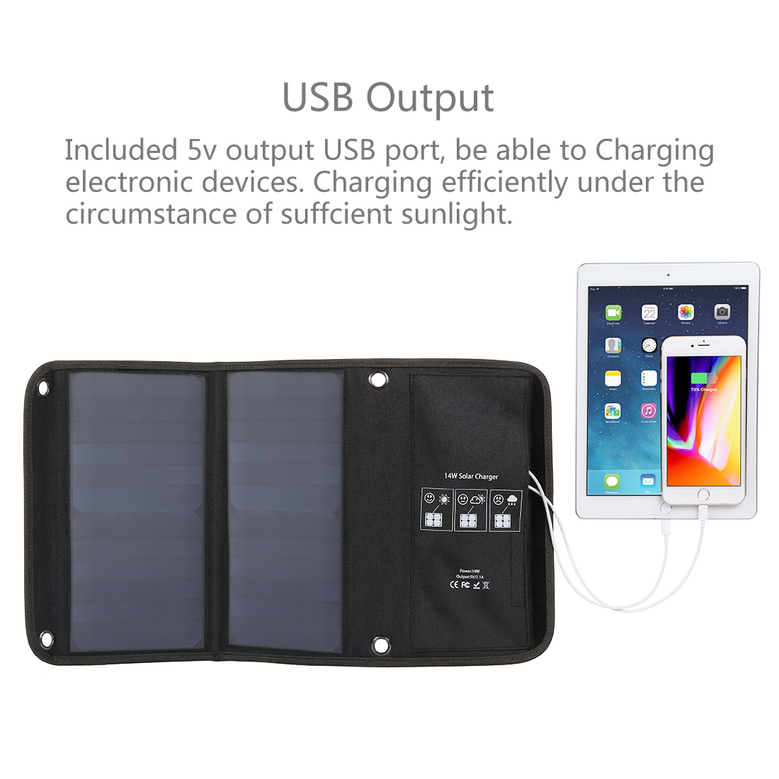 Panneau solaire GENERIQUE Panneaux Solaires Imperméables Portatif de 15W pour Tourisme Randonnée Vente en ligne de chargeurs solaires portables et batteries pour partir en randonnée ou voyager en toute liberté ! Les chargeurs solaires pliables ou enroulables sont particulièrement compacts Chargeur Photovoltaïque Pour Van 8W Pack Pliant Solaire Sac De Charge Solaire USB Portable ExtéRieur Chargeur Solaire Portable 1., Sortie USB : la sortie USB standard convient aux téléphones mobiles et autres appareils électroniques portables, opération simple., 2., Taux de conversion élevé : taux de conversion photoélectrique élevé, adapté aux activités de plein air, aux urgences et aux travaux en extérieur., 3., Haute efficacité : chargeur de panneau solaire à haute efficacité, économie d'énergie et protection de l'environnement, longue durée de vie., 4., Étanche : le sac pliant solaire est fabriqué en silicone et en nylon de haute qualité, imperméable et , et peut être utilisé pour charger des téléphones portables, des banques d'alimentation, etc., 5., Léger et portable : le chargeur solaire pliable a un design fin et léger, léger et facile à transporter, adapté à une utilisation en extérieur et en intérieur. Liste des colis: Forfait comprenant 1 x sac solaire pliable 2 x crochets Si vous aimez les activités en plein air telles que la randonnées, le camping, l’escalade, la pêche, la randonnée, le pique-nique etc, le meilleur chargeur solaire portable est probablement le BigBlue 28 W. Il s’agit ici d’un petit panneau solaire portable compact, léger et pliable qui dispose de quatre panneaux solaires qui absorbent la lumière directe du soleil de tous les... 273 g / 9,6 oz Taille du produit plié : env. Étanche : le sac pliant solaire est fabriqué en silicone et en nylon de haute qualité, imperméable et , et peut être utilisé pour charger des téléphones portables, des banques d'alimentation, etc. Taux de conversion élevé : taux de conversion photoélectrique élevé, adapté aux activités de plein air, aux urgences et aux travaux en extérieur. Léger et portable : le chargeur solaire pliable a un design fin et léger, léger et facile à transporter, adapté à une utilisation en extérieur et en intérieur.