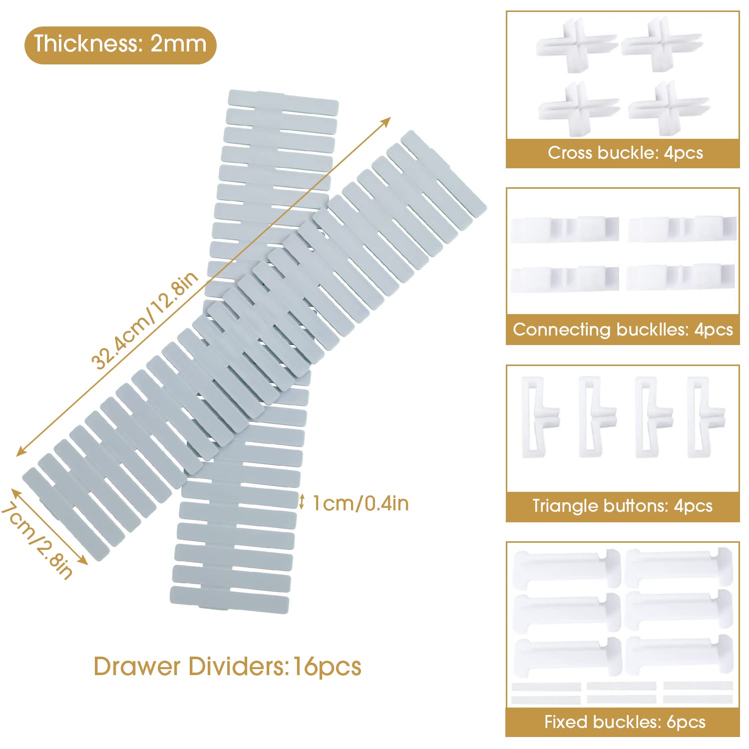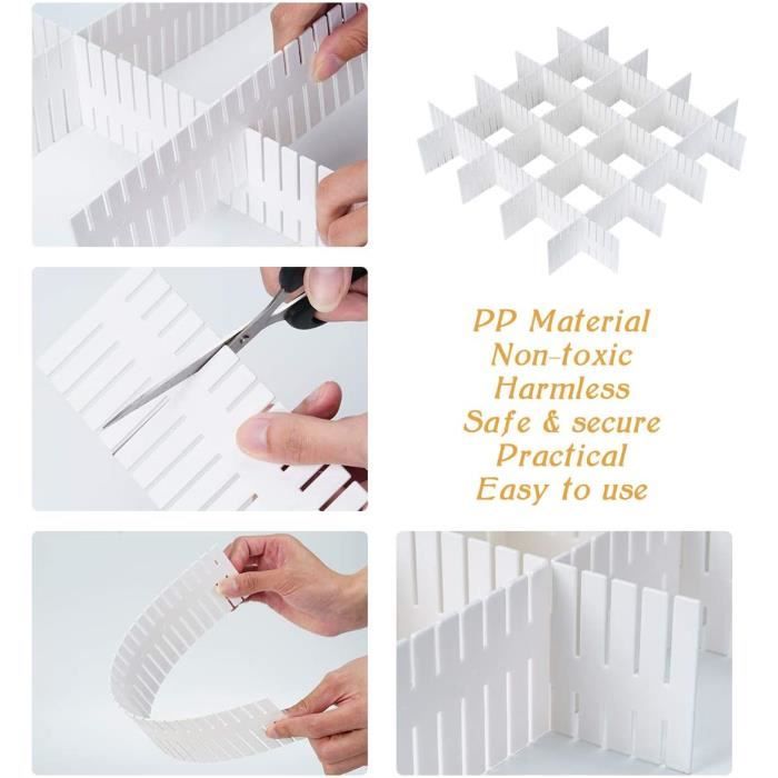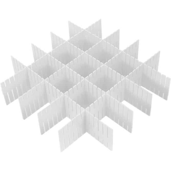 32pcs diviseurs tiroir Grille réglable séparateur Placard en Plastique... Taille: 32 * 7 cm / 12,6 * 2,75 pouces, peut facilement couper la section à une longueur plus petite ou à la taille requise et à la fente en place Large application: organisez votre bureau ou vos tiroirs, pouvez ranger vos petites fournitures de bureau et ranger vos sous-vêtements, chaussettes, cravates, nœud papillon, etc. Accessoire Rangement Tiroir 8pcs Bricolage Tiroir En Plastique Organisateur Diviseurs De Tiroir Kit Organisation Tiroir Coupe Personnalisable Matériau: en plastique de haute qualité, duralbe à utiliser pendant longtemps Séparateurs de tiroirs en plastique, réglables, lot de 4, séparateurs de tiroirs transparents, organisateur de tiroirs pour placard, sous-vêtements Lot de 8 Réglable Grille Tiroir Diviseurs en Plastique Organisateur de Placard Diviseurs Séparateurs pour Chaussettes de Placard Rangées Sous-Vêtements Fournitures Bureau Spécifcation Nom du produit: diviseurs d'organisateur de tiroir Matériel: plastique Quantité: 8 pack Couleur: gris Taille: 32 * 7cm / 12,9 * 2,75 pouces Caractère Ensemble de 8 séparateurs de tiroirs pour garder vos tiroirs organisés et sans encombrement S'assemble facilement sans outils ni effort. Lot de 4 séparateurs de tiroir, réglables, blancs, transparents, pour armoire, sous-vêtements, chaussettes, bricolage, organisateur de bureau | Leroy Merlin
