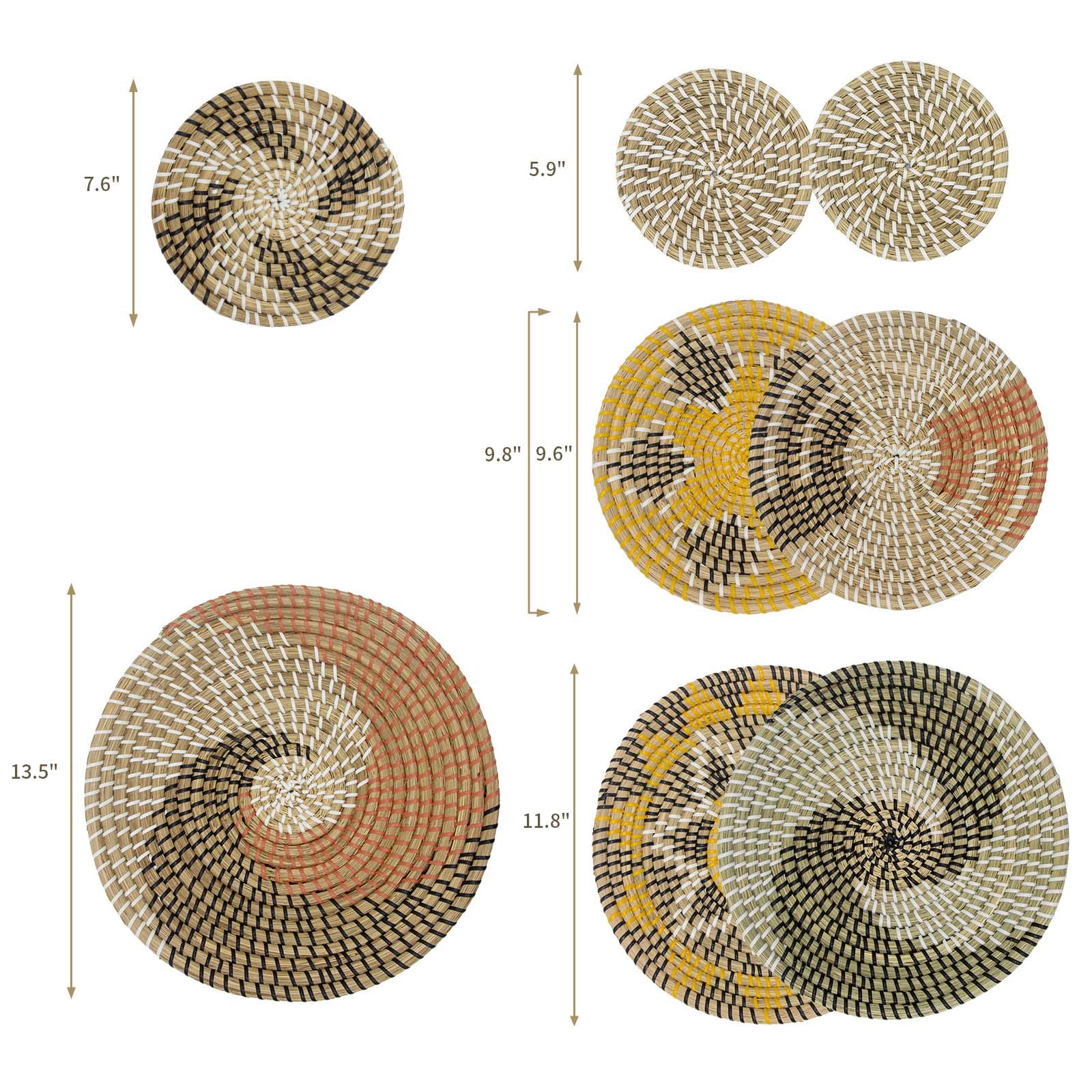 Décoration Murale Lot De 9 Paniers Muraux Bohèmes, Décorations Suspendues En Osier Et Rotin Marin~p151421570 Panier Mural Horloge Murale En Rotin Nordique Décoration Murale Boho Pour Décor D Dakota Fields 7 paniers muraux bohème décoratifs suspendus paniers... Elle s'intègre parfaitement dans n'importe quelle pièce : salon, chambre, salle à manger ou couloir - Ajoute une atmosphère chaleureuse et naturelle à n'importe quelle pièce. Véritable artisanat du Vietnam. Nos paniers sont durables, respectueux de l'environnement et exempts d'additifs chimiques Idéal pour les intérieurs bohèmes, japonais ou scandinaves, cet art mural naturel apportera une atmosphère harmonieuse et confortable à votre salon, chambre ou couloir. Facile à suspendre et polyvalent : chaque panier a un crochet de suspension fixe à l'arrière – Facile à monter. Parfait pour le salon, la chambre à coucher, le couloir, la salle de bain ou la cuisine - S'harmonise avec n'importe quel style : bohème, scandinave, rétro ou moderne Si le kit de corbeille murale SCHNAMEE Boho ne répond pas à vos attentes, vous recevrez 100 % de votre argent, sans risque, sans stress Accrochez-les aux murs pour ajouter un intérêt visuel, utilisez-les comme plateaux de service pour des collations ou des boissons, comme votre salon, votre chambre, votre cuisine, votre salle à manger ou comme décorations de mariage bohème, ou incorporez-les dans vos projets de bricolage