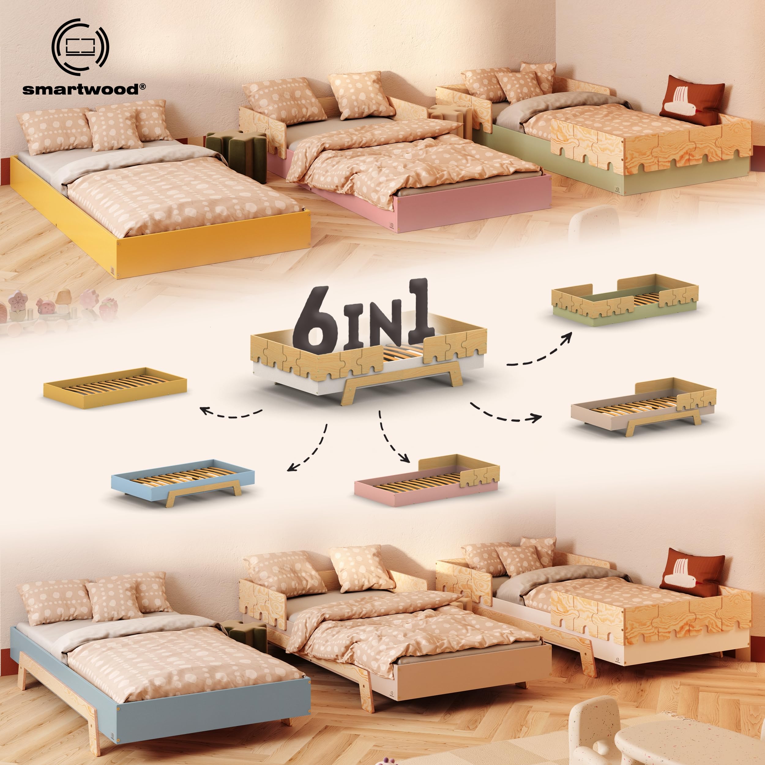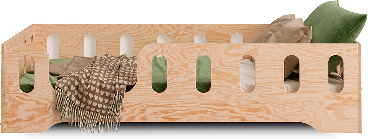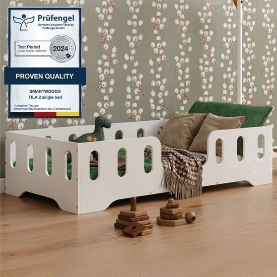Lit Sécurisé Enfant Chambre Design Scandinave Smartwood Lit Enfant 90x200 6en1 - Lit Au Sol Enfant En Bois Naturel - Noir - Avec Barrière & Sommier Jusqu'à 230 Kg - Lits Montessori à Partir De 2 Ans Pour Lit évolutif 6 Configurations 2 Ans Et Plus Test du lit enfant Smartwood TILA 2P : sécurité et montage rapide Découvrez notre test complet du lit enfant Smartwood TILA 1L 90x190, un lit montessori alliant design élégant et confort optimal pour le bien-être de votre enfant De plus, il peut être monté avec ou sans pieds, transformant ainsi le lit classique en lit au sol. Lit enfant avec barriere de sécurité en contreplaqué de pin certifié FSC (15 mm) – Bords arrondis et construction robuste garantissent une sécurité et une stabilité maximales dans la chambre d’enfant Lit 90x190 avec sommier à lattes – Le sommier à lattes de bois flexibles supporte jusqu’à 230 kg. Lit enfant 6 en 1 - Les deux barrières incluses peuvent être configurées de trois façons : avec les deux barrières, une seule ou aucune. Ce lit 1 personne de haute qualité convient à un matelas de 90x190 cm et offre un confort et une durabilité optimaux L’ensemble comprend un cadre de lit, un sommier à lattes flexibles, deux barrières de sécurité, un kit de montage et une notice claire. Le lit se monte rapidement et facilement Lit au sol 90x190 sommier inclus Léna - Bois - Lits/Lit au sol enfant...