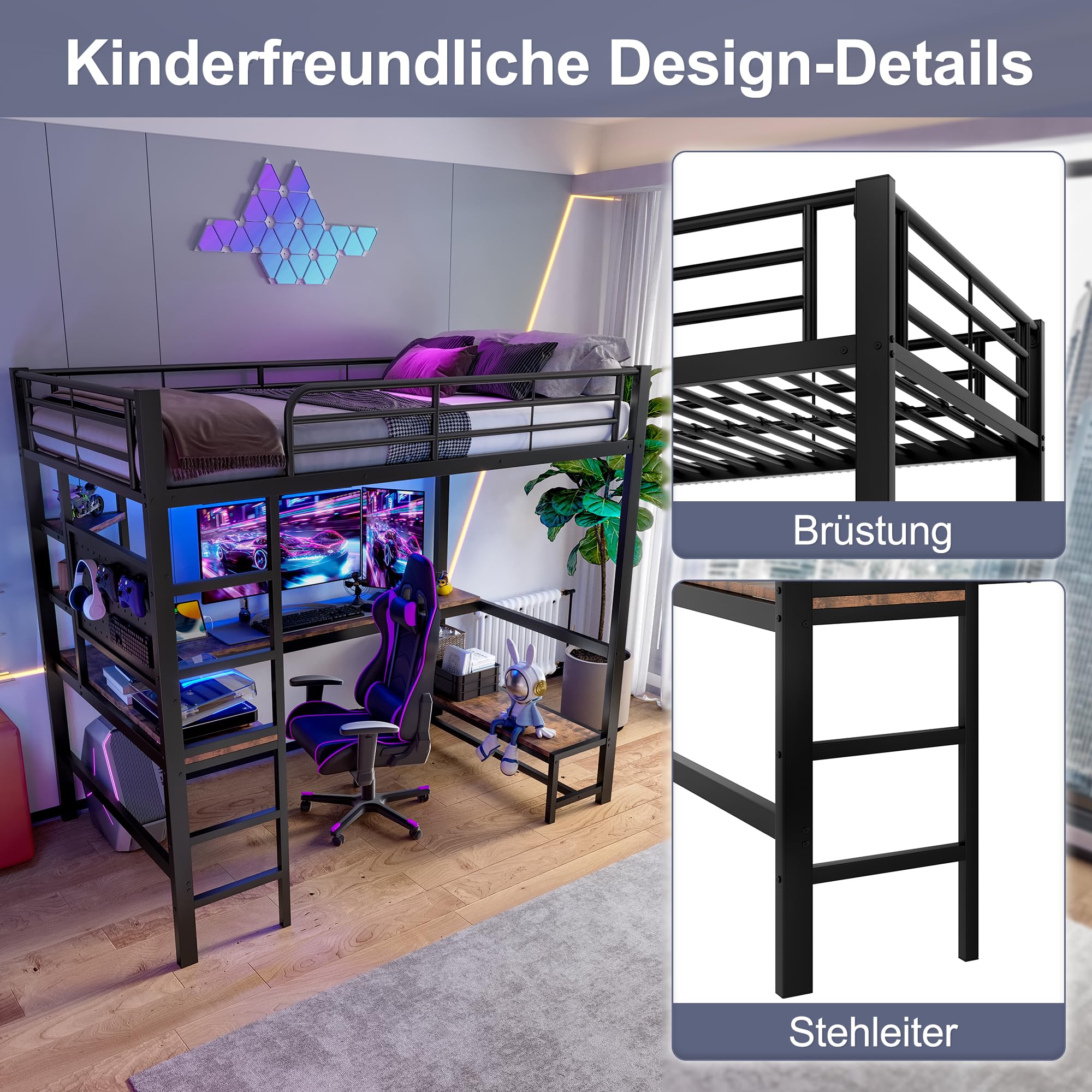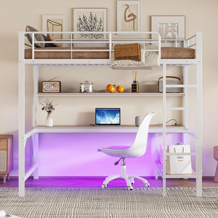 Litera En Forma De L 2 X 90 X 200 Cm Con Almacenamiento Y Escritorios Blanco Y Natural Lascano Lit Enfant Sécurisé Garde-corps Lit Mezzanine - Enfant - 90x200 Cm - Bureau Intégré - Prise USB - Noir Lit Mezzanine Avec Bureau Lit Mezzanine Enfant Évolutif avec Bureau - Cadre Métal & MDF - 90x200 cm / 140x200 cm ( Noir/Blanc ) Conçu pour accompagner la croissance de votre enfant, notre lit mezzanine allie un cadre métallique industriel robuste et des panneaux MDF haute densité Éclairage d'ambiance LED 7 couleurs avec télécommande : Crée une atmosphère d'étude ou de détente personnalisable (mode & intensité) pour une chambre d'enfant chaleureuse et ludique sans quitter le lit. Lit mezzanine 90x200 cm - avec étagère échelle de rangement - structure... Espace de travail intégré avec étagère multifonction : Bureau pratique et étagère de rangement spacieuse organisent livres et fournitures scolaires, créant un environnement d'étude confortable et fonctionnel. Prises électriques & ports USB intégrés : Permet de recharger facilement ordinateurs, tablettes et téléphones directement depuis le lit, assurant une utilisation sans interruption pour les études ou les loisirs.