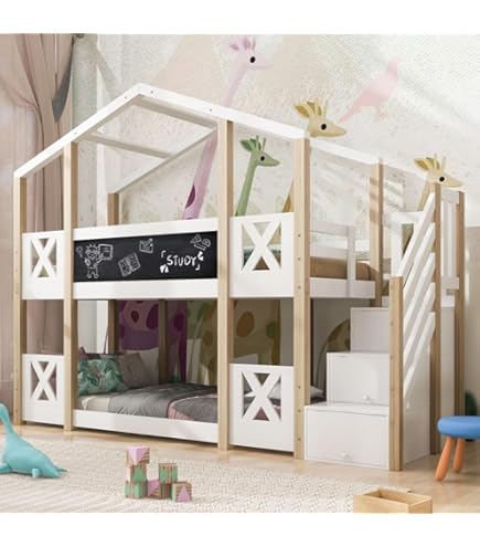 2 tiroirs sous le lit inférieur pour un gain d’espace supplémentaire Fabriqué en bois de pin robuste et MDF de qualité, avec un design mêlant blanc pur et finitions naturelles, il apporte chaleur et modernité à l’intérieur. Facile à monter grâce à des instructions détaillées et des pièces numérotées, ce lit est livré en 4 colis pour une meilleure praticité Poids et dimensions Dimensions totales : 254 x 95 x 170 cm, Poids total : 108 kg Escalier intégré avec 4 placards de rangement : L’escalier du lit superposé est conçu avec 4 grands placards intégrés, idéaux pour ranger vêtements, jouets ou objets personnels. Capacité de charge Lit mezzanine : 120 kg Dimensions : 90 x 200 cm; Matériaux : Bois de pin PB; Coloris : Blanc Naturel; Éléments inclus : Échelle 4 marches, 6 étagères ouvertes, armoire latérale... En raison de la grande taille de ce produit, il est expédié en 4 colis et peut arriver à des dates différentes. Procédure de montage : À installer soi-même, Nombre de colis : 4, Remarque 1., Les mesures étant prises manuellement, il peut y avoir une erreur de 2 à 3 cm, ce qui est normal., 2., Toutes les photos sont prises en nature, en raison de la lumière ou du moniteur, il peut y avoir une légère différence de couleur., 3., Si vous avez des questions, veuillez d'abord contacter notre service clientèle. Ce lit superposé multifonction combine ingéniosité, sécurité et design ludique pour la chambre d’enfant. Lit Superposé Avec Bureau Lit Superposé Pour Enfants 90x200cm , Avec Rails, Design Toit, Avec 3 Armoires De Rangement, Blanc + Couleurs Naturelles Lit Pin Enfant Tableau Noir EN STOCK : Lit superposé avec escalier de rangement - 90x200cm - 4 casiers dans l'escalier et 2 tiroirs sous le lit - avec sommier à lattes - Blanc pas cher... Montage rapide et facile : Ce cadre de lit est conçu pour être facile à assembler et est accompagné d'instructions claires, étape par étape, que vous pouvez suivre pour terminer l'assemblage rapidement. Sa finition naturelle apporte chaleur et élégance à la décoration intérieure Structure solide et stable en bois de pin et MDF : Fabriqué en bois de pin résistant associé à du MDF de qualité, ce cadre de lit combine durabilité et stabilité. Si vous avez des questions, n'hésitez pas à nous contacter KOMHTOM Lit Superposé pour Enfant 90x200 cm, Lit 2 Places L’aspect général reste moderne et attrayant, tout en s’intégrant facilement dans une chambre d’enfant ou d’adolescent Caractéristiques Nom du produit : Lit superposé , Couleur : Blanc + Naturel Matériau des lattes : Bois La structure est-elle interchangeable de gauche à droite ? Non