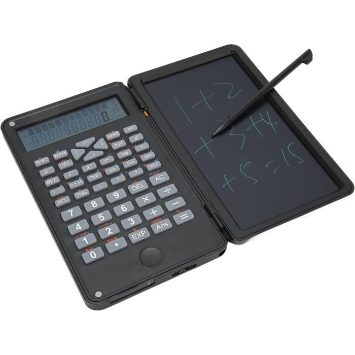 Calculatrice Lycee Calculatrice Scientifique Avec Bloc-notes, 15,91 X 3,54 X 1,5 C, Grand écran à 10 Chiffres Calculatrice Lcd 12 Chiffres Calculatrice De Poche 15,2 Cm Avec Bloc-Notes, Calculatrice Scientifique À 10 Chiffres Calculatrice avec bloc-notes : équipée d'un tablette d'écriture de 6,5 pouces, vous pouvez prendre des notes ou un graphique pendant qui calcul en utilisant... Affichage à 2 lignes : conception d'écran d'affichage à 2 lignes, prend en charge les calculs à 12 chiffres et 10 sorties de données, la première ligne affiche le processus de calcul, la deuxième ligne affiche le résultat du calcul. Il intègre une batterie CR2025, peut être remplacé pour une utilisation en cycle et adieu au mode de peinture traditionnel. C'est un excellent outil pour les calculs des étudiants, les calculs de bureau, les calculs d'ingénierie, les calculs commerciaux, les calculs financiers, etc. Spécifications : Type d'élément : Calculatrice scientifique Matériau : ABS Type de batterie : CR2025, 165 mAh (intégrée) Comment utiliser : Voir le manuel. Excellent ca deau : avec cette calculatrice scientifique 2 en 1, vous pouvez calculer et prendre des notes à tout moment, ce qui est un bon assistant pour améliorer l'efficacité du travail. Cela peut aider efficacement les élèves à terminer leurs devoirs de mathématiques. Idéal pour les amis, les familles, les étudiants, les collègues, les machinistes, les enseignants, les ingénieurs, etc. Caractéristiques du produit : - Écran LCD de 6 pouces avec 12 digits pour des calculs clairs et précis. - Port Type C pour une connectivité facile avec d'autres...