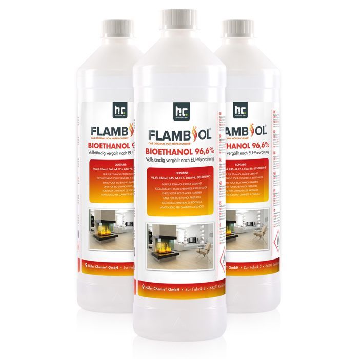 Bioéthanol Dénaturé FLAMBIOL® 96,6% en Bouteille de 1L - Parfait pour Pour une utilisation optimale, laissez brûler l'intégralité du bioéthanol dans la chambre de combustion à chaque utilisation. Évitez les résidus de liquide en vous assurant que le bioéthanol est refroidi avant de rallumer Pour Intérieur Extérieur Propre Bioéthanol 96,6 % 10 L | Alcool Bio Parfum Vanille 96,6 % 2 | FindTheDeal Carburant Cheminée Intérieure Extérieure Ce produit de taille pratique de 10 litres est spécialement conçu pour permettre une utilisation propre et agréable. Grâce à la grande capacité de remplissage, une utilisation plus longue est possible sans avoir à le remplir constamment. Bioéthanol 100% 6 x 10 L (60 L) de Haute pureté pour cheinée à éthanol... Le parfum délicat de vanille donne à n'importe quelle pièce une ambiance chaleureuse sans être intrusif. L'utilisation dans le salon reste simple et confortable, car il n'y a pas de dépôts et la qualité de l'air n'est pas affectée. Silencieux et discret : crée une atmosphère agréable et détendue Haute pureté : ne laisse aucun résidu et facilite l'entretien de l'environnement