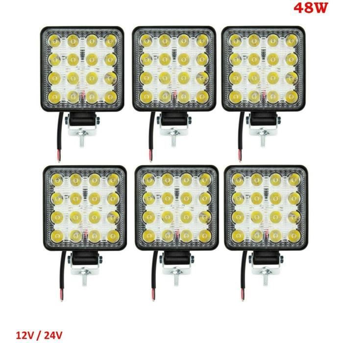 Phare De Travail LED Carré 24W 3200Lms 3,7 Faisceau Large Pour Moto Camion 4x4 Led Osram 3663967790710 Le pack comprend 2 phares carrés de 4 pouces (10 cm), chacun faisant 60W avec une lumière blanche 6000K ultra puissante. Ils fonctionnent en 12V ou 24V, donc... Projecteur Ip67 Voiture 27W 12V 9LED Projecteur De Travail Carré Pour Tracteur Camion SUV UTV éclairage Led 6000k Équipé de 9 LEDs EPISTAR de 3W chacune, ce projecteur délivre une lumière puissante de 2150 lumens avec un faisceau large, idéal pour assurer une visibilité optimale sur vos chantiers, engins agricoles, véhicules utilitaires ou zones industrielles. Le boîtier en aluminium moulé sous pression associé à un support en acier inoxydable assure robustesse et résistance aux chocs. SWANEW 10PCS Phare de Travail LED 48W LED Phare Travail Projecteur... Sa température de couleur de 6000°K garantit une lumière blanche intense, proche de la lumière du jour, parfaite pour une vision nette et confortable. Durée de vie : 30 000 heures pour une utilisation longue durée sans souci. Alliez puissance et fiabilité avec ce projecteur LED carré 27W, conçu pour offrir un éclairage performant et durable, même dans les conditions les plus exigeantes. Température de fonctionnement : -40°C à +60°C — conçu pour affronter les conditions climatiques extrêmes.
