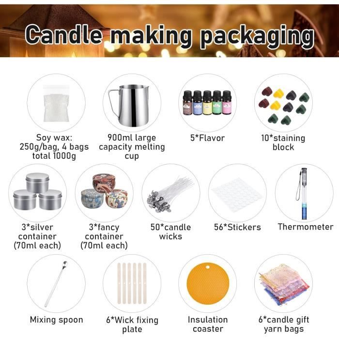 Astuce : le kit de fabrication de bougies à palette chaude est recouvert d'un film antirouille, de sorte que la fumée apparaît lors de la première utilisation, c'est un phénomène normal, veuillez comprendre que cela sert à protéger les stocks de fabrication de bougies, les palettes chaudes ne rouillent pas ! Pot Cire 900ml Acier Inox Bolosa Kit Bougie A Faire Soi Meme Adulte, Kit Fabricatioougie Cire Bougie Maison Noël Contenu du carton:1 x Kit Bougie a Faire Soi Meme Adulte NEXUB Kit de Fabrication de Bougies, DIY Kit Parfuées Bougies avec... Il répond également aux normes de qualité alimentaire et peut donc être utilisé pour préparer du café, idéal pour faire fondre le beurre, le chocolat, le fromage, les bonbons, le caramel. Cire à fusion rapide: notre cire bougie fondoir haute performance chauffe les bougies uniformément pour gagner du temps. Suzzam Kit Bougie a Faire Soi Meme Adulte, Kit de fabrication de... Il y a des lignes graduées à l'intérieur du pot qui permettent un contrôle précis de la dose de fabrication de bougie. L'ensemble de coulée de bougie comprend un pot de bougie en acier inoxydable de 900 ML, un chauffe - bougie pour la fonte rapide des bougies, une cuillère à soupe, un tapis antidérapant, une prise de bougie, un support et un thermomètre. Particulièrement adapté aux grandes quantités - idéal pour faire plusieurs bougies en continu avec votre Kit fabrication bougie! NEXUB Kit de Fabrication de Bougies, DIY Kit Parfuées Bougies avec Pot de Cire Pratique: pot de cire de grande capacité: pot de cire de 900ml et cuillère en acier inoxydable 304 dans Kit bougies, résistant à la rouille, haute température et forte résistance à la corrosion. Alignement professionnel des mèches pour bougies: les mèches pour bougies réutilisables sont fixées à l'aide de supports spéciaux.
