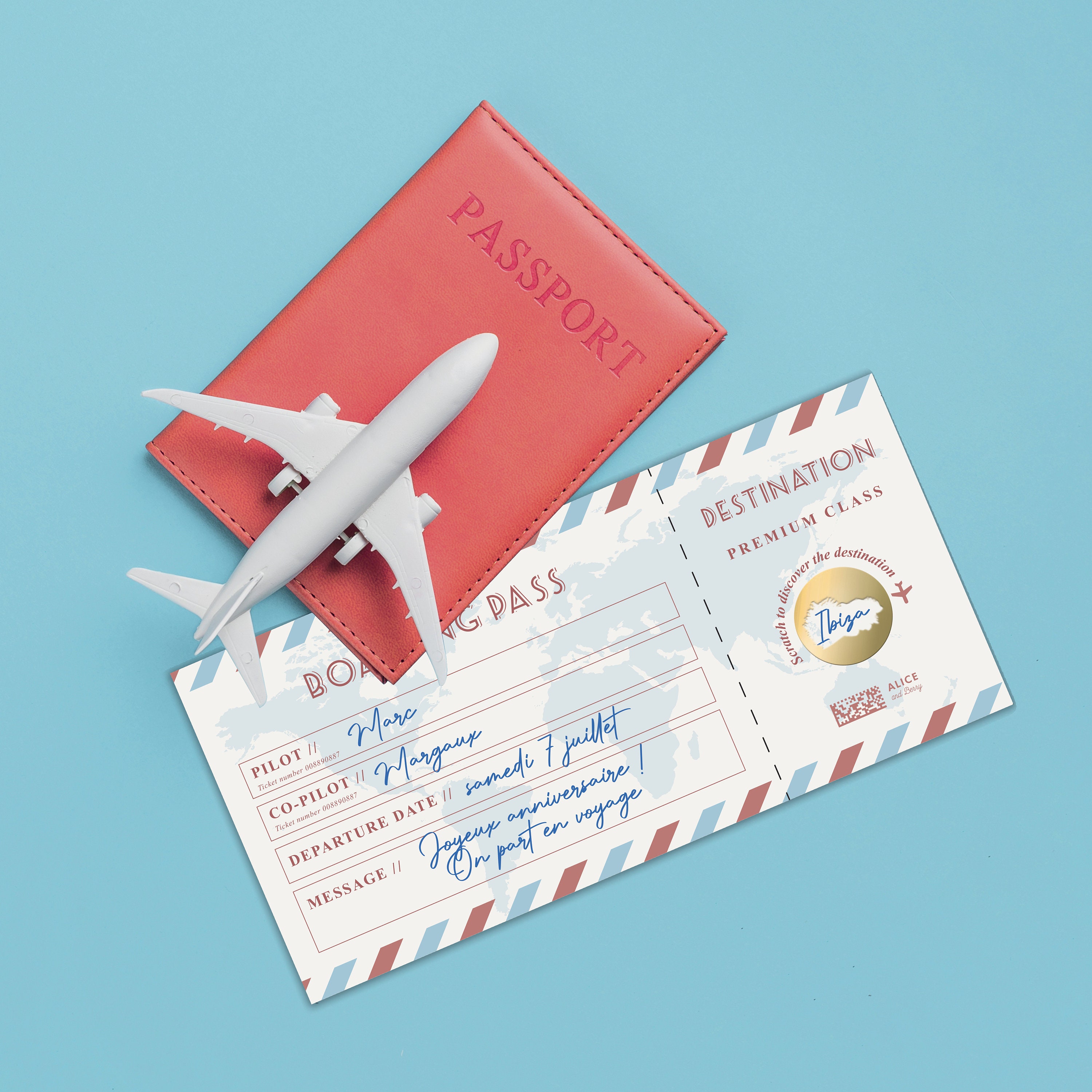 Carte Bicycle Rudis Tiny Goods Carte A Gratter Voyage Surprise - Carte Embarquement - Faux Billet Avion Annonce - Ticket A Gratter Personnalisable - Cadeau Anniversaire Faux Billet Avion Annonce Destination Annonce Voyage Surprise Carte Voyage Surprise à Gratter - Annonce Cadeau Destination Secrète - Carte Embarquement Personnalisable Cheque Geant Annonce voyage surprise - carte à gratter d'embarquement - billet... Ce faux billet d’avion personnalisable devient un ticket à gratter original qui garde la destination secrète jusqu’au moment de la surprise. Cette carte cadeau personnalisable est présentée dans une pochette élégante et se dévoile comme un billet avion personnalisable, un ticket à gratter créatif qui rend l’annonce encore plus spéciale. 🎂CARTE ANNIVERSAIRE: Idéale comme carte anniversaire ou comme carte cadeau personnalisable pour un mariage, Noël ou la Saint-Valentin. ✈️FAUX BILLET AVION PERSONNALISABLE: Au lieu d’un simple cadeau en argent, offre un billet avion factice au design de carte embarquement. ) peut être inscrite directement sur la carte pour personnaliser ton voyage surprise. 🖊 ANNONCE VOYAGE SURPRISE: Une idée originale pour révéler un voyage. Grâce à sa personnalisation simple, cette carte cadeau personnalisable convient à tous. Découvrez notre carte d'embarquement personnalisable, un cadeau original pour annoncer un voyage surprise. Avec sa zone à gratter révélant la destination, elle transforme l'offre d'un voyage en un moment magique. Idéale pour les anniversaires, mariages ou toute occasion spéciale