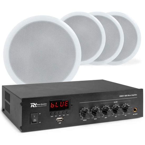 Herdio Haut-parleurs de Plafond,Enceinte encastrable Plafond à 2 Voies PACKCANTO5.4/W Pack avec amplificateur et haut-parleurs plafond |TLSA Haut-parleurs Plafond Kit A100WSet Lot De 4 Haut-Parleurs De Plafond Avec Amplificateur Mural Power Dynamics En effet, cette enceinte dispose d’une puissance de 30 watts et elle est compatible avec les systèmes audios. Vous pourrez facilement installer un système audio (stéréo) dans un bureau, une salle d'attente, ou une pièce de votre maison par exemple. Fonstar KS-WALL Kit 4 amplificateurs muraux et 4 enceintes de plafond Bluetooth/USB/FM/AUX... AMPLI POWER DYNAMICS A100W : Le Power Dynamics A100W est un contrôleur audio Bluetooth d'une puissance de 4 x 20 Watts. UN KIT SUR-MESURE : Ce kit a été pensé pour vous proposer des produits cohérents dans un ensemble fonctionnel au meilleur prix. Les packs sont validés par des professionnels et ils vous assurent du matériel approprié pour un fonctionnement optimal. Avec nos kits vous pourrez profiter de produits en correspondance parfaite, au prix le plus juste.