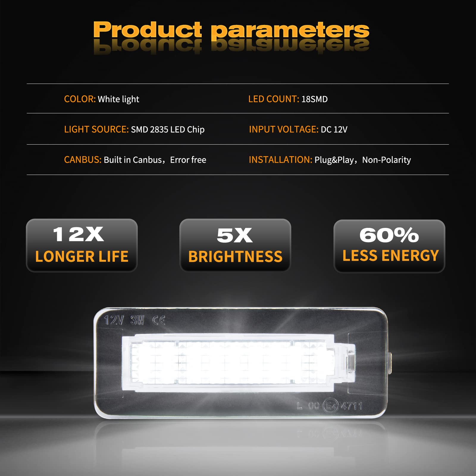Justech Lot de 22 apoules navettes LED 12 V Can-bus sans erreur SD... N'endommage pas le boîtier d'origine. Température de couleur : 6500K Fitment:Compatible for Mercedes Benz Compatible for Smart Fortwo Coupe/Convertible (Type 451) 2007-2015; Compatible for smart Fortwo Coupe/Convertible (Type 450) 2004-2007 ; Compatible for Smart fortwo carossblade W450 2004-2007; Compatible for Smart fortwo Cabriolet w450 2004-2007; Compatible for Smart fortwo Cabriolet W451 2007-2015 DIMENSIONS DU PRODUIT Compatible avec MERCEDES BENZ SMART FORTWO CUPÉ/CABRIOLET 450, 451, W450, W453 Description du produit Description : Chaque feu de plaque d'immatriculation est équipé de 18 LED SMD à la lumière super brillante. Fitment: Compatible for Smart fortwo Cabriolet W453 2015~; Compatible for Smart fortwo coupe W450 2004-2007; Compatible for Smart fortwo coupe W451 2007-2014; Compatible for Smart fortwo coupe W453 2015~. Feux Auto SMD 2 Feux Plaque Immatriculation LED - Pour Mercedes Classe B W242 W246 - Blanc Xenon Blanc Xenon 6000K REMPLACEMENT DIRECT Durabilité et Résistance Résistances de charge et unité de contrôle CAN-bus intégrées pour éviter les problèmes de codes d'erreur de l'ordinateur de bord (OBC). Ampoules LED Plaque Smart Fortwo Sans Erreur A2468201566 Remplacement Kit 2 éclairages LED Plaque Immatriculation Mercedes Classe B - Blanc 7000K - Compatible W242 W246 éclairage Arrière Blanc Feux Plaque Smart Fortwo 450 451 Lumière blanche xenon 6000K. Remplacement direct pour les numéros de pièce d'origine du fabricant OEM : A4518200256, A 451 820 02 56 Veuillez confirmer le modèle, l'année de votre voiture et la taille originale de la plaque d'immatriculation. Installation directe, aucun câblage supplémentaire ou modification nécessaire, simple branchement et utilisation (Plug & Play). Les avantages des ampoules LED pour voitures Type d'installation : Remplacement Direct LED par ampoule : 18 LED Pas de codes d'erreur d'avertissement ou d'alertes de sortie d'ampoule, et pas besoin de reprogrammation de l'ordinateur. Installation Facile : Branchement et Utilisation (Plug & Play) Veuillez vérifier soigneusement la compatibilité avant l'achat., Merci., ) Installation facile: Remplacement direct avec une conception plug-and-play pour une installation sans tracas.