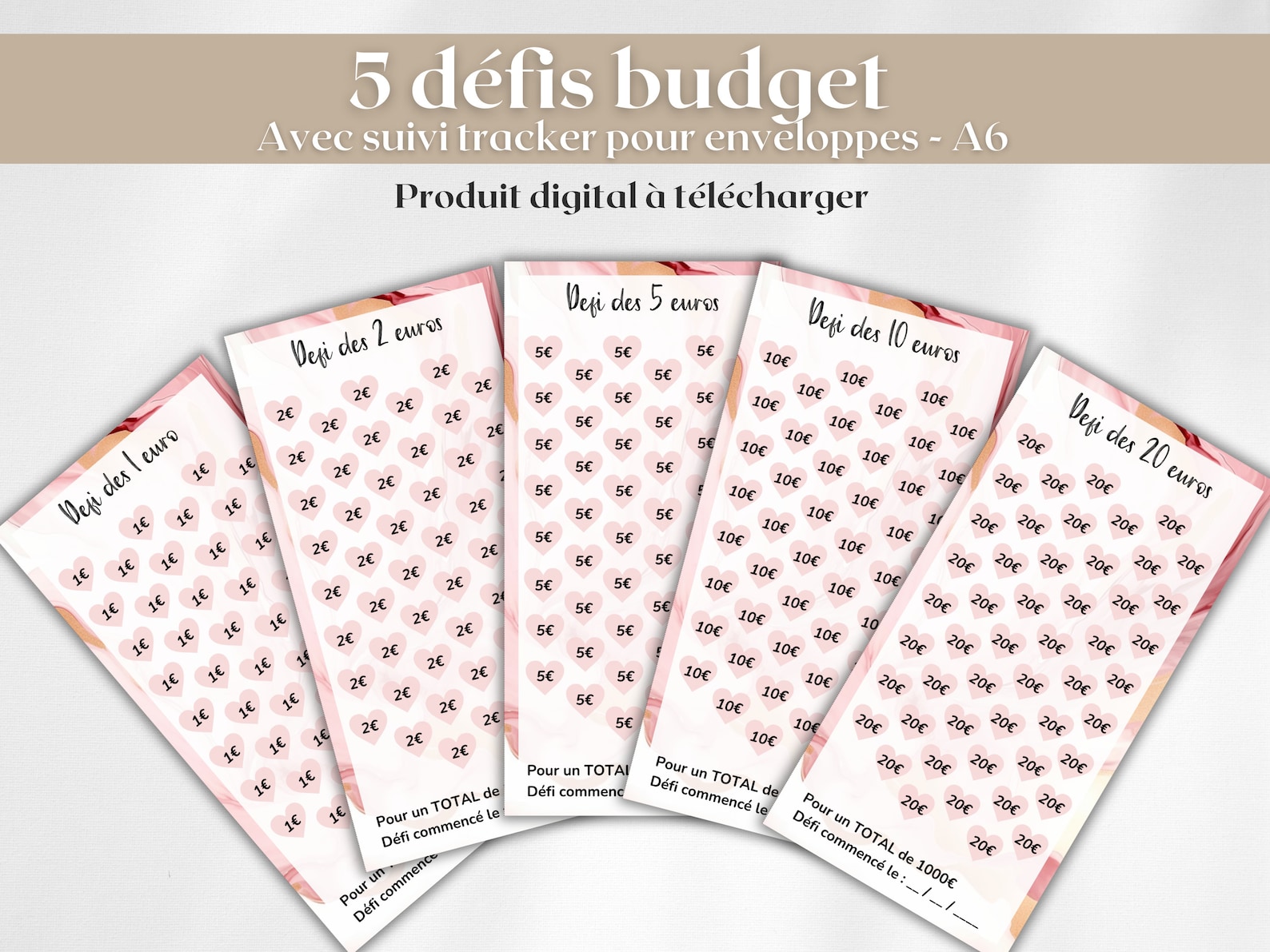 Avec ce classeur d'épargne financière et ce carnet à anneaux de budget d'argent, vos objectifs de rêve ne sont plus qu'à un pas ! 5 Défs enveloppes budget format A6 / Tracker Déf budgétare A6... Rangement pratique des cartes : équipé d'une pochette spéciale pour le rangement des cartes, ce reliureur offre un espace pratique pour les documents importants, les cartes ou les reçus. Remplissez les enveloppes et profitez de la sensation d'économiser tout en atteignant vos objectifs. épargne Enveloppes Enveloppe Budget Francais A5 Classeur Budget Planner 5050€ Classeur Organisateur Finances Personnelles Un voyage d'épargne captivant : Spécialement conçue pour le 100 Enveloppe Saving Challenge, chaque enveloppe représente un jour et transforme l'épargne en une activité visuelle amusante. Commencez votre voyage d'épargne ! Portable et élégant : gérez vos finances partout et à tout moment. Restez organisé et concentré sur vos objectifs de planification budgétaire A5 avec enveloppes, sans vous soucier des objets perdus. Cadeau parfait pour la conscience financière : ce Budget Planner français fait un cadeau bien pensé qui transforme la budgétisation en un défi amusant. Caractéristiques : - Cet élégant organisateur d'argent du Budget Planer est livré avec 25 enveloppes d'argent liquide et une carte Challenge 100 jours. - En plus du challenge des enveloppes, ce livre de comptes à remplir offre de la place pour des aperçus du budget, des listes de dépenses et des objectifs d'épargne afin de garder un œil sur vos finances à tout moment. Reliure défi 100 enveloppes ! Économisez 5 050,00 $ avec ce classeur A5 tout-en-un ! Comprend : 1. Reliure A5 (transparente, blanche ou noire) 2. Carte de suivi (peut être marquée avec un marqueur et retirée avec de lalcool à friction) 3. Pochettes de 25 à 4 poches, étiquetées 1-100 avec vinyle Le carnet Défi Épargne 100 enveloppes est le compagnon idéal pour atteindre vos objectifs financiers et faire de l'épargne une expérience amusante ! Il encourage la responsabilité financière de manière ludique et inspire vos proches à prendre leurs finances en main et à développer de meilleures habitudes. 5 Défs enveloppes budget format A6 / Tracker Déf budgétare A6