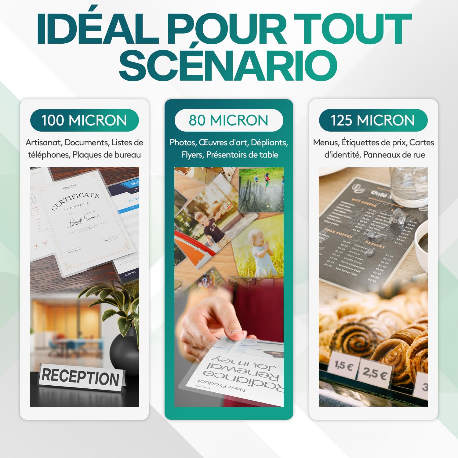 Plastifieuse Documents Photos ACROPAQ Feuilles Plastifieuse A3 - 100 Mic, 50 Pochettes, Brillantes Pack 300 Pochettes Formats Mix ACROPAQ 100 Feuilles plastifieuses A5 - 100 mic, 100 pochettes, Brillantes, Qualité supérieure, Coins arrondis Taille des feuilles plastifieuse A5 : 153x216 mm (pour A5). d'une épaisseur100 microns. - Quantité : 100 pièces - Poids : 764 g Compatible - Nos Feuilles plastifieuses A5 sont compatibles avec toutes les plastifieuses que nous... ACROPAQ Feuille plastifieuse A3 - Pack de 50 pochettes de plastification, 2x100 (200) micron, Finition brillante, Coins pré-arrondis - Feuilles plastifieuse A3, Papier plastifieuse, Film à plastifier Résultats cristallins de A3 à A5 - Grâce à des matériaux de haute qualité, les pochettes plastifieuse A3 et pochettes plastifieuse A5 offrent des résultats nets et éclatants. ACROPAQ &àà Feuilles plastifieuses A4 100 microns - 100 pochettes de plastification universelles- Brillantes- Coins arrondis Lot de 100 feuilles plastifieuses A4 de 100 microns, idéales pour protéger vos documents. Avec une finition brillante et des coins arrondis, elles offrent une qualité supérieure et sont compatibles avec toutes les plastifieuses. Parfaites pour un usage courant ou... La satisfaction du client - Avec plus d'un million de clients satisfaits à travers l'Europe, nous nous efforçons toujours de répondre à vos besoins. Des petites étiquettes aux grandes affiches, vous avez toujours la taille de film appropriée sous la main. Compatibles avec toutes les plastifieuses - Ces pochettes pour plastifieuse s’utilisent facilement avec les plastifieuses courantes, idéales pour l’école, le bureau ou les projets créatifs à la maison. Ce set pratique de différentes tailles offre des résultats d'une clarté cristalline et d'une grande durabilité - idéal pour une utilisation à la maison, au bureau ou à l'école.