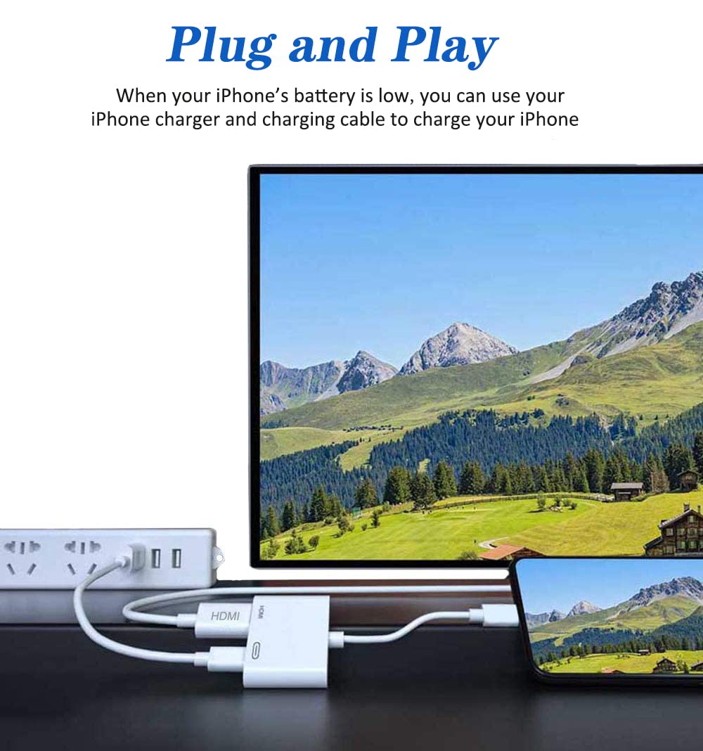 Cable Adaptateur Lightning vers HDMI TV AV numérique Il prend en charge l'édition HD 1080p complète. Compatible IPhone 14 13 12 ADAPTATEUR CÂBLE HDMI Compatible Pour IPhone HDTV 1080P AV Vers Écran Dongle Streaming IPhone TV Les applications vidéo payantes peuvent ne pas être prises en charge. Cet adaptateur Lightning vers HDMI prend en charge la mise en miroir du contenu affiché sur votre téléphone et votre tablette, y compris les images, les films, les jeux, les applications, les présentations, les sites Web, les diaporamas et bien plus encore, sur votre téléviseur/projecteur/moniteur HDMI ; prend en charge une résolution HD... Description du produit Adaptateur AV numérique certifié Apple MFi vers HDMI compatible avec iPhone 14, 14 Plus, 14 Pro, 14 Pro Max, 13, 12, Pro Max, XR, XS, X 8 7 6 Plus, SE 2, iPad vers HDTV/projecteur/moniteur Cet écran de synchronisation audio AV HDMI dongle prend en charge la mise en miroir de l'écran de votre iPhone sur votre TV, moniteur, projecteur, résolution maximale à 1080p HD... Brancher et utiliser: Connexion simplement chaque port vers le périphérique correspondant via la CEBLE (voir illustration), puis appelez le 8 à 10 secondes jusqu'à ce que la connexion soit établie. Remarque: mais pas compatible avec Netflix, Amazon Prime Video, HBO Go, Hulu et Honda Motor. Polyvalent: il est très adapté aux divertissements à domicile, aux réunions d'entreprise, à l'éducation, à la formation, etc. Prend en charge les appels vidéo pour FaceTime, Skype, WhatsApp; Prend en charge des vidéos, des photos, des jeux et des diaporamas en streaming. Dispositifs compatibles: cette connexion compatible HDMI avec iPhone 14/14 Pro / 14 Pro Max, 13 / 13pro / 13 par max / 13 mini, 12/12 par max / 12 mini, 11/11 par max, xr / xs / xs Max, 8 7 6 Plus, iPad Air / Mini / Pro, prend en charge le système iOS 17., 1 et les versions plus récentes. L'adaptateur AV numérique prend en charge la réflexion de ce qui s'affiche sur l'écran de votre téléphone (y compris les applications, les présentations, les sites Web, les diaporamas et plus) sur votre télévision, votre projecteur ou votre affichage dans jusqu'à 1080p.