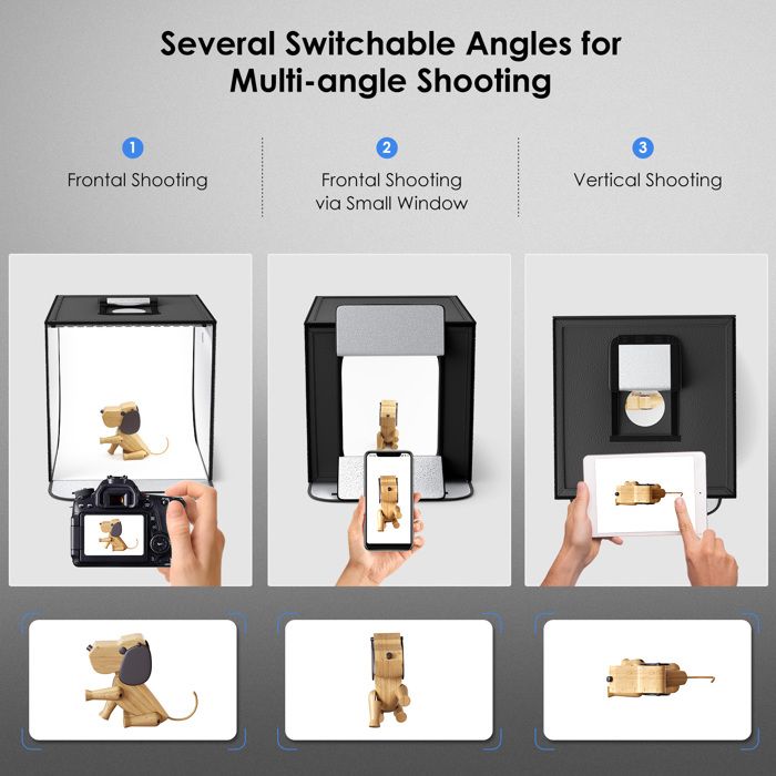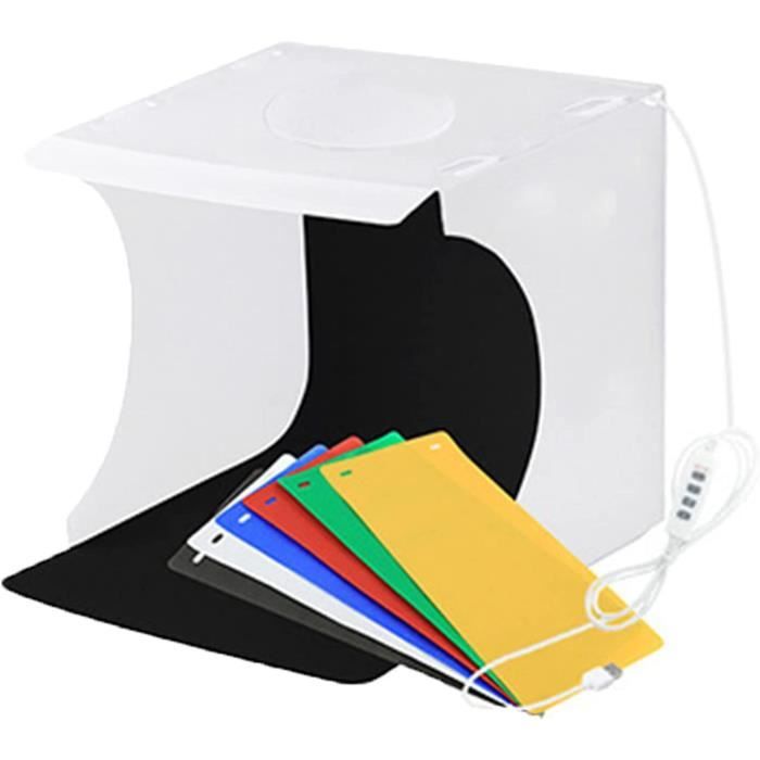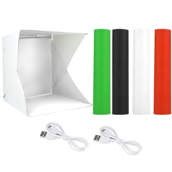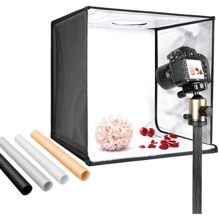 Il dispode d'un cadre léger et ferme. Mosaïque Boîte à lumière PULUZ Portable Pliant tente boîte avec 12 couleurs décors pour photographie Accessoire photo OFFRE ADHERENT LIVRAISON OFFERTE Voir le produit Type de flash Non concerné Accessoires fournis 1 * studio photo (un panneau lumineux rond) 1... La longueur de la fente de l'ouverture du rideau avant mesure 60,5cm, qui permet à l'appareil de passer à travers, comme un SLR, un appareil photo sans miroir,un enregistreur vidéo, un téléphone portable, etc. -Taille: 60x60 Inch 150cm Contenu de l'emballage: -1 x tente de shooting studio photo portable -1 x fond noir -1 x fond blanc photo -1 x fond bleu foncé -1 x fond rouge -1 x sac de transport -1 x ouverture frontale amovible Accessoire Photographie Produit Petit Objet Tente De Studio Pliable AIHONTAI - Mini Studio Pour Photographie Avec Boîte à Lumière Fonds Photo Professionnel Avec plusieurs angles de prise de vue, il peut mieux présenter les caractéristiques et la beauté du produit Caractéristiques: -Lightbox photo a une grande ouverture frontale amovible pour permettre des images de studio faciles à la maison ou au bureau. La boîte à lumière blanche pure peut créer une réflexion diffuse parfaite, adoucir la lumière sans fuite, réduire efficacement les interférences de couleur et les ombres, éliminer les taches réfléchissantes, améliorer la texture et la précision des couleurs Le rideau peut être librement démonté et collé avec des bandes de fixation par morceaux à haute viscosité Le produit se déplie lorsqu'il est sorti du sac de rangement, vous pouvez donc installer un studio photo partout en peu de temps -Le box photo studio lumineuse comprend un étui de transport personnalisé. TENTE DE TIR PRO: Tente de prise de vue pour studio photo 150x150cm, composée d'un tissu en nylon blanc translucide diffusant la lumière et d'un cadre de support en métal hautement élastique. oustiquaire pour lit, Tente Portable de Voyage Pliable avec Double... -En nylon blanc translucide diffusant la lumière, cache-porte amovible avec fente pour objectif de caméra. APPLICATIONS LARGES: La tente de tir de 150x150cm convient parfaitement pour photographier des cosmétiques, des parfums, des jouets, des bijoux, des montres, des desserts, de petites figurines, de petits modèles et d'autres objets minuscules. Photo Studio Boîte de Lumière Tente de Shooting Pliable LED avec 4
