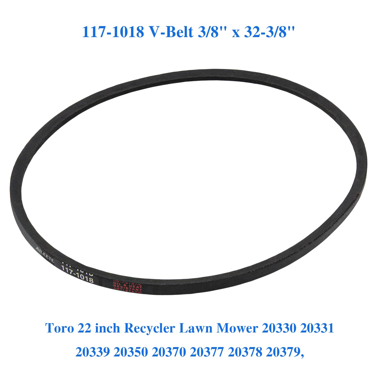 SAC GAZON robuste pour tondeuse gazon Toro 22 pouces 20330 20331 20370 Pièce Remplacement Toro Recycler 22 AILEETE 117-1018 Courroie Trapézoïdale 3/8" X 32-3/8" Pour Tondeuse à Gazon Toro 22" 20330 20331 20339 20370 20371 20377 20378 20379, Remplace Toro O Toro 1171018 Courroie tondeuse SPA1000 Trapézoïdale - 12,7 mm x 1018 mm 1., Remplace les pièces d'origine : 117/1018 cm 265-537 10306 75/332 cm 2., Contenu de l'emballage : 1 courroie trapézoïdale 117-1018., 3., Dimensions : Largeur : 3/8 Longueur : 32-3/8 po 4., Type d'équipement : Tondeuses à gazon Toro 22 Recycler 5., Compatible avec les modèles suivants : 20330,20330C,20331,20331C 20339,20339C,20350,20351., 20370,20371,20377,20378,20379., 20954,20959,21378,21442,21445., Remplace les pièces OEM : Toro 117-1018 AILEETE 117-1018 - Correa trapezoidal de 3/8 pulgadas x 32-3/8 pulgadas... Courroie trapézoïdale 117-1018 fabriquée en caoutchouc de haute qualité, durable et stable, facile à installer et à utiliser Modèles compatibles : Toro 20330, 20330C, 20331, 20331C, 20339, 20339C, 20350, 20351, 20370, 20371, 20377, 20378, 20379, 20954, 20959., 21378 Tondeuses à gazon 21442, 21445