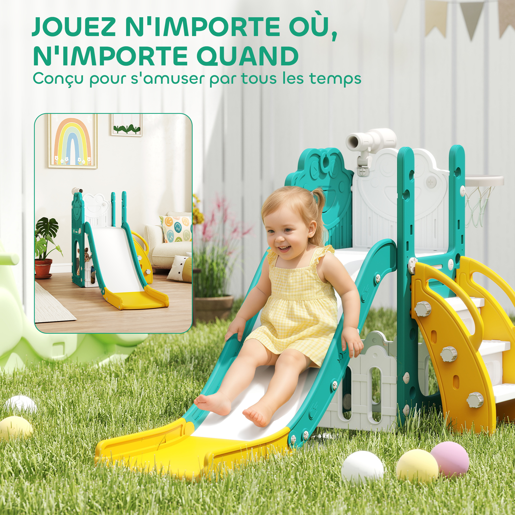 Ensemble de glissade pour enfants 5 en 1, options de jeu intérieur infinies Ce toboggan est fabriqué en HDPE sans danger pour la santé des tout-petits Inclut un télescope de jeu et un panier de basketball, stimule la créativité et l'apprentissage Fabriqué en HDPE sûr, cet ensemble stimule créativité et amitiés tout en assurant sécurité. Toboggan 5 En 1 - Avec Escalier, Balançoire, Espace De Rangement Panier De Basket Jaune Clair Glissade douce et sécurisée avec des zones spécialement conçues pour une descente en douceur Transformez votre intérieur avec le toboggan pour tout-petits AIYAPLAY. Points forts : Composition du lot : - 1 x Ensemble de Toboggan pour Tout-Petits ; - 1 x Panier de Basket ; - 1 x Ballon de Basket ; - 1 x Pompe ; - 1 x... GLISSE LISSE ET SÉCURISÉE À CHAQUE FOIS : Doté de zones pour accélérer, ralentir et amortir, ce toboggan est conçu pour assurer des descentes douces. Package includes: 1 x Ensemble de Toboggan pour Tout-Petits 1 x Panier de Basket 1 x Ballon de Basket 1 x Pompe 1 x Télescope 1 x Manuel d'Assemblage Marches antidérapantes pour une montée sécurisée Toboggan Enfant AIYAPLAY Toboggan Pour Tout-petits 5 En 1 Toboggan Autoportant Pour En Aire De Jeux Intérieure Toboggan pour enfant, Toboggan d'intérieur et extérieure pour bébé... Livré avec un ballon de basketball et une pompe, prêt pour le jeu immédiat