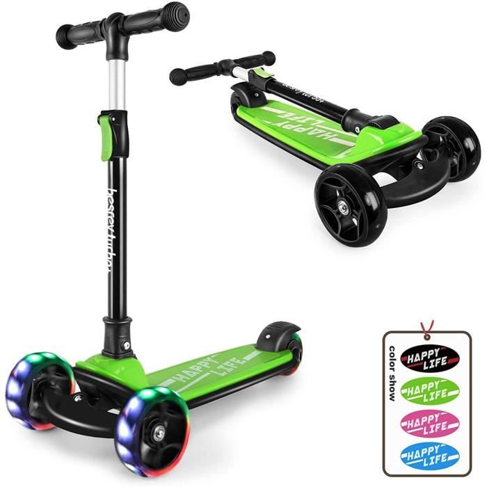 Pliable pour un rangement facile., Prêts à rouler ! SEJOY 3 En 1 Trottinette Enfants 3 Roues Lumineux 2 à 8 Ans, Trottinette Pliante Siège Amovible Parfaite sur les trottoirs ou les sentiers, elle garantit sécurité et amusement à chaque virage. Trottinette Pliable Roues LED AIYAPLAY Trottinette Enfants, Trottinette Pliable à 2 Roues, Guidon à 4 Réglages En Hauteur, Scooter Avec Plateau Antidérapant, Frein, Patinette Pour Filles Et Garçons 6 à 12 Ans, Noir Trottinette Electrique Cadre métallique solide supportant 50 kg, roues à énergie magnétique lumineuses sans piles. Caractéristiques:● La hauteur de la poignée ajustable convient aux enfants de 3 à 8 ans● Cadre métallique robuste supportant jusqu'à 50 kg● Design cool et coloré avec des lumières vives auto-alimentées● Grandes roues de 145 mm et roulements ABEC-7 pour des trajets en douceur● Trottinette pliable avec système de freinage double pour une sécurité accrue● Patinette pour enfants facile à plier et à ranger dans les coffres de voiture● Cette trottinette pour enfants comprend un support de pied pour un stationnement facile● Montage nécessaireSpécifications:● Couleur : blanc● Matériau : PP, revêtement synthétique, métal● Dimensions totales : 73L x 36l x 73-89H cm● Dimensions pliées : 68L x 12l x 23H cm● Hauteur réglable : 73/78/84/89H cm (guidon)● Dimensions de la plateforme : 48L x 10H cm, hauteur du sol : 8 cm● Diamètre de la roue : Ø 14,5 cm● Charge max. Trottinette pliable à 3 roues pour enfants de 3 5/5 7/8 12 ans... Equipée également d'un support de pied pour un stationnement vertical facile. Une manière fascinante de pimenter chaque balade ! Trottinette électrique pliable 3 roues JPB-T3 AJUSTABLE POUR LES ENFANTS EN CROISSANCE : Réglable en hauteur de 73 à 89 cm, cette trottinette pour enfants est idéale pour les enfants de 3 à 8 ans. recommandée : 50 kg● Taille convenable : 100-120 cm● Âge approuvé : 3 ans et plus● Âge recommandé : 3-8 ans● Norme de sécurité : EN71-1-2-3● Réf. CONDUITE LISSE ET SÉCURISÉE : Dotée de roues de 145 mm et de roulements ABEC-7 de qualité supérieure, cette trottinette pliable assure une conduite fluide et absorbant les chocs. Descriptions Longues:Découvrez l'aventure avec la trottinette AIYAPLAY pour enfants, ajustable de 73 à 89 cm pour les 3-8 ans. FREINAGE SÛR ET SÉCURISÉ : Avec un frein arrière et un frein à main, cette patinette pour enfants offre une double sécurité de freinage pour un contrôle optimal et des arrêts sûrs et immédiats.