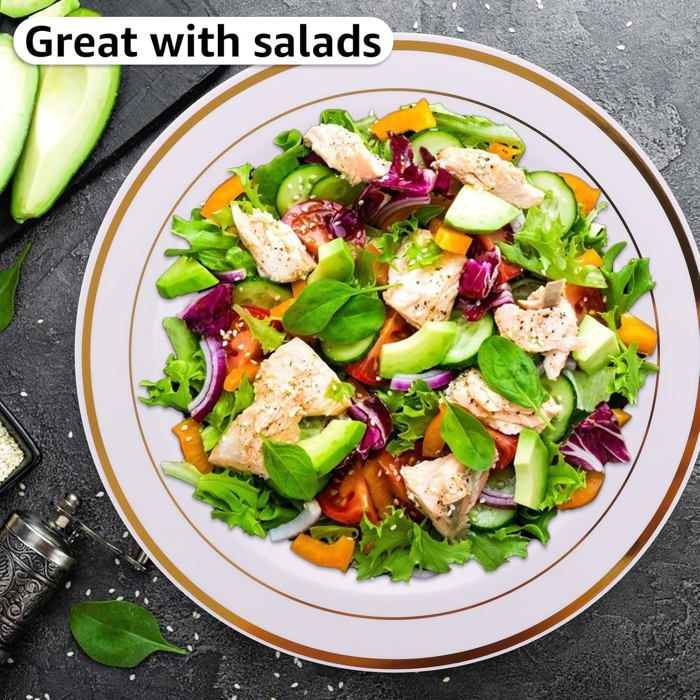 Ce plastique transparent avec des bords creux dorés est durable, flexible et réutilisable. Caractéristiques : Matériau : plastique dur Couleur : transparent avec bord doré. Assiettes Plastique Transparent Réutilisables AKOLAFE Lot De 50 Assiette Transparente Plastique 22,9 Cm Assiette Jetable Noel AKOLAFE Lot de 16 Bocaux rangeent cuisine 500 l Bocal rangeent... Quantité : 50 Dimensions : 19 cm et 26 cm (7,5 et 10,25 pouces) Contenu de la livraison : 25 assiettes en plastique transparent avec bord doré de 19 cm. Les assiettes en plastique transparent AKOLAFE sont fabriquées en plastique rigide de qualité alimentaire, ce qui les rend plus solides et plus durables que les autres films en plastique. Pour éviter les déchets, les assiettes en plastique peuvent être jetées après la première utilisation ou rincées à la main et réutilisées. Les assiettes en plastique robustes et transparentes sont dorées, ressemblent à du verre, mais sont incassables et sont idéales pour présenter et servir des entrées, des plats principaux et des desserts ainsi que pour les anniversaires d'enfants. Vous pouvez utiliser ces assiettes en plastique pour toutes sortes d'aliments, tels que les entrées, les biscuits, les pâtisseries et bien plus encore. Lors de fêtes familiales telles que les barbecues ou les fêtes, elles sont prêtes à l'emploi et n'ont pas besoin d'être nettoyées. Réutilisable : les assiettes de présentation en plastique transparent peuvent être facilement nettoyées et séchées avec du savon et de l'eau chaude. Les assiettes en plastique réutilisables peuvent être facilement nettoyées et séchées avec du savon et de l'eau chaude. AKOLAFE 40 Pièces Assiettes de fête 19c et 25,5 c Assiette Noel... Matériaux de qualité supérieure : ces assiettes en plastique sont fabriquées en plastique dur de qualité alimentaire, plus solide et plus durable que les autres plastiques. Utilisation polyvalente : les assiettes en plastique transparent conviennent non seulement pour un usage domestique, mais aussi pour votre restaurant, café ou service de restauration et sont idéales pour les événements en plein air : pique-niques, barbecues, fêtes, anniversaires. Ils sont également sans danger pour les enfants, car notre graisse ne contient pas d'éclats de verre. AKOLAFE Lot de 50 assiettes réutilisables en plastique dur transparent, 23 cm - Pour fêtes, mariages et anniversaires