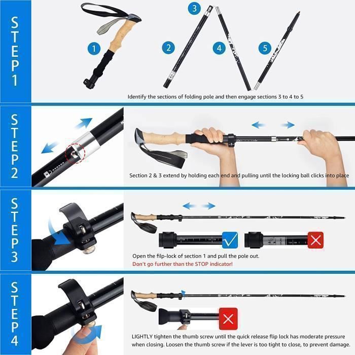 Grâce au système télescopique réglable en continu (115-130 cm) avec double sécurité et bouton de blocage, vous pouvez régler la hauteur souhaitée en un clin d'œil et en toute sécurité – sans vacillement. Bâtons de marche télescopiques pliants - Black - Ultra légers - 4 Poignées ergonomiques : les poignées spéciales en mousse EVA assurent une prise en main confortable sous la chaleur et la pluie. Baton De Marche ALPENFUX® Bâtons De Randonnée Télescopiques De Qualité Supérieure - Bâtons De Marche Nordique - Léger Et Réglable - Avec Poignée En Liège - Pour Homme Et Femme - Noir, Orange Bâtons Ultra Légers 270g Aluminium Aéronautique Elles ne pèsent que 270 g par bâton et peuvent être pliées à une taille compacte de 37 cm - Légères, maniables et idéales pour le sac à dos. La poignée ergonomique en mousse EVA offre une prise en main antidérapante, absorbe la transpiration et reste confortable même en cas de chaleur et d'humidité. Bâtons de Randonnée Télescopiques- Pliable, Antidérapant et Antichoc... Comprend un sac de transport pratique pour un transport sûr et propre au quotidien et en voyage. Elles se glissent dans n'importe quel sac et sont idéales pour les randonneurs, les randonneurs, les amateurs de marche nordique et les amateurs de trekking. Marque. gipfelsport ; Matériau. Caoutchouc , EVA , Liège ; Couleur. Poignée EVA ; Matériau de la tige. carbone ; Longueur allongée. 135 Centimètres Contenu de la livraison : 2 bâtons de randonnée BERGIPFEL 4 embouts sac de transport, manuel d'utilisation multilingue (avec allemand) BERGIPFEL – La marque allemande pour les équipements de plein air de qualité supérieure. Avec les quatre embouts interchangeables, vous êtes parfaitement équipé pour toutes les surfaces : Coussinets en asphalte (caoutchouc) – Silencieux et doux pour les articulations Profil tout-terrain – Adhérence sur le gravier et les chemins forestiers Paniers à neige – Pour les randonnées hivernales Paniers de boue – Dans des conditions humides Les bâtons de randonnée soulagent votre colonne vertébrale, protègent les genoux et les articulations et vous donnent plus de stabilité et de sécurité. Réglable en hauteur et prêt à l'emploi : grâce au système télescopique avec double sécurité et bouton de blocage, les bâtons de randonnée pliables sont réglables en continu de 115 cm à 130 cm et conviennent aux femmes, hommes et adolescents de toutes tailles. BERGIPFEL Bâtons de randonnée télescopiques : plus de maintien, plus de confort, plus d'aventure. Nos bâtons de marche sont antidérapants, absorbent la transpiration et équipés de sangles réglables en longueur pour encore plus de contrôle et de confort.