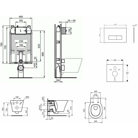 Idéal comme kit complet de toilettes avec installation murale. Abattant WC Soft-close Amorti AM.PM Pack WC Suspendu Kit Complet Élément Mural Avec Plaque De Déclenchement II90151 + WC Suspendu Flash FlashClean + Abattant WC Avec Système D'abaissement Automatique Soft-Close, AM.PM Prime Fit élément Mural Support 400 Kg Toilettes – Sans rebord et sans plastique : WC suspendu sans bord (CTA1700SC) avec technologie innovante FlashClean pour un nettoyage hygiénique et facile – réduit la saleté, les germes et les bactéries dans les toilettes. Cette combinaison offre une solution minimaliste et hygiénique pour toute salle de bain moderne. Les sets de toilettes sont envoyés dans 2 colis différents. Le couvercle des toilettes ne peut pas être utilisé comme siège, il est uniquement destiné à couvrir la cuvette des toilettes Compatible uniquement avec l'élément mural AM. PM Idéal pour les kits complets encastrés de WC et les solutions de toilettes suspendues au mur. L'ensemble IIS90138.TA1700 comprend une combinaison WC-WC (CTA1700SC) avec vanne d'arrêt automatique à fermeture douce, déclencheur AM.PM II12709 incluant... Réservoir plat encastré (120 mm de profondeur) pour économiser de l'espace. Support WC pouvant supporter jusqu'à 400 kg. Contenu de la livraison – Kit complet : ensemble WC complet : 1 x WC suspendu sans bord (CTA1700SC), 1 x siège de toilette à fermeture amortie, 1 x élément mural (II12709), 1 x plaque de déclenchement double (II90138), 1 x manuel d'utilisation (allemand et anglais). Pack Complet WC Suspendu Rivea Malie Et Bâti-support Neeos, Plaque De Declenchement Avec Dispositif Dactionnement Carre Noir Mat A1144209 Idéal pour les petites salles de bains et WC d'invités. Livré en 2 paquets séparés.